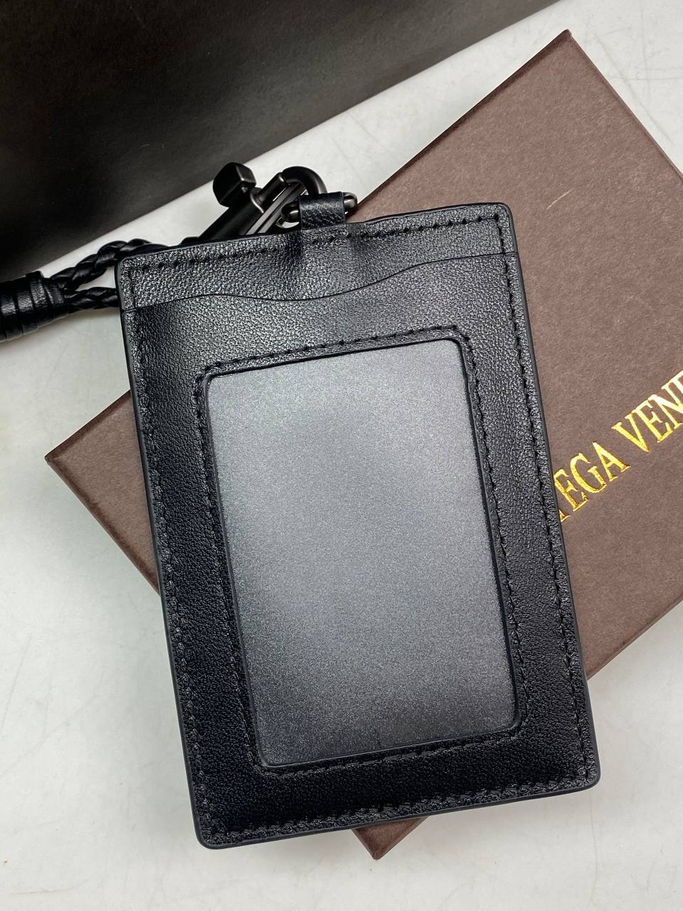 Строгий и практичный бейдж из натуральной кожи с фирменным плетением, дополненный цепочкой для ношения на шее.