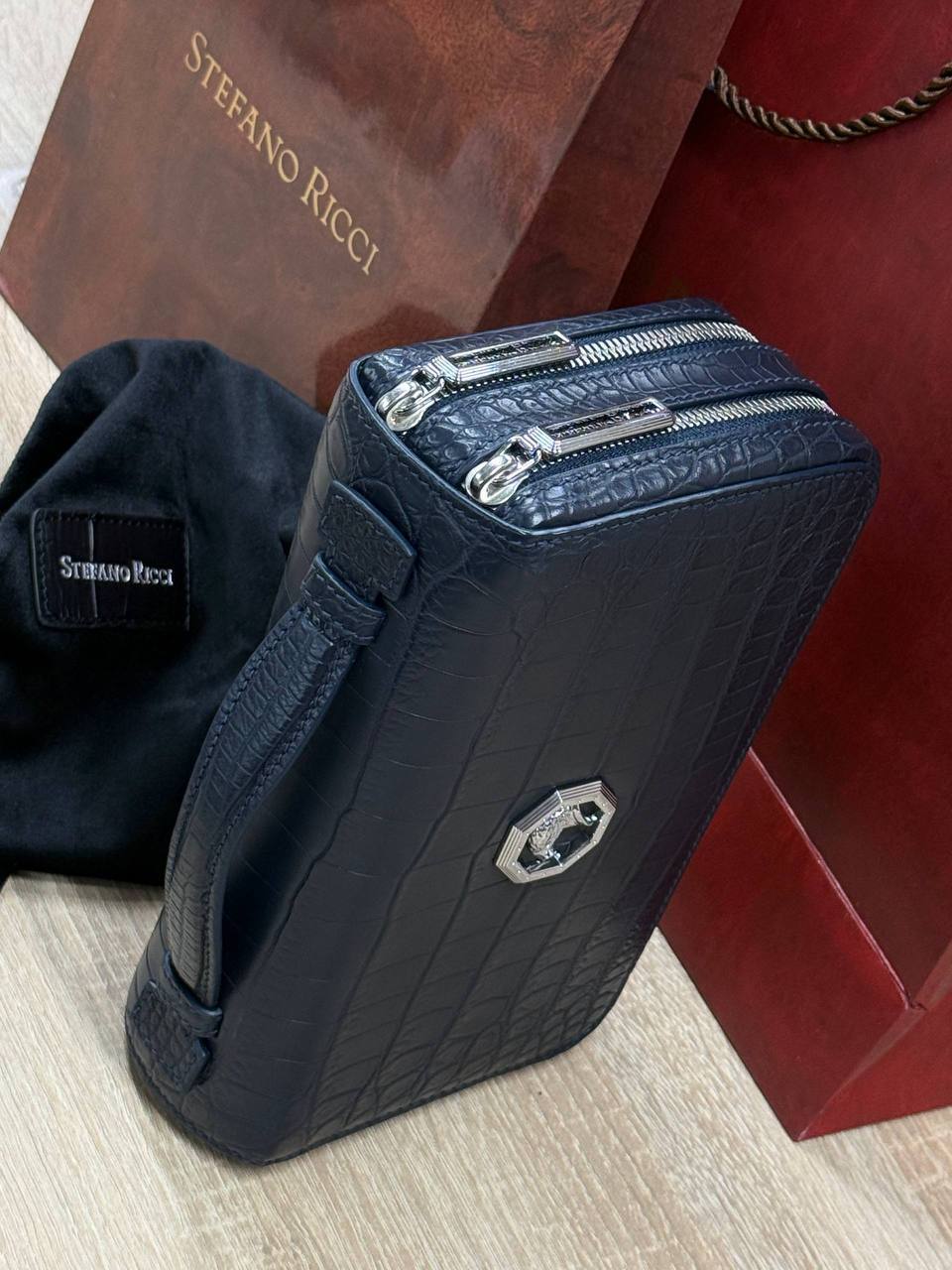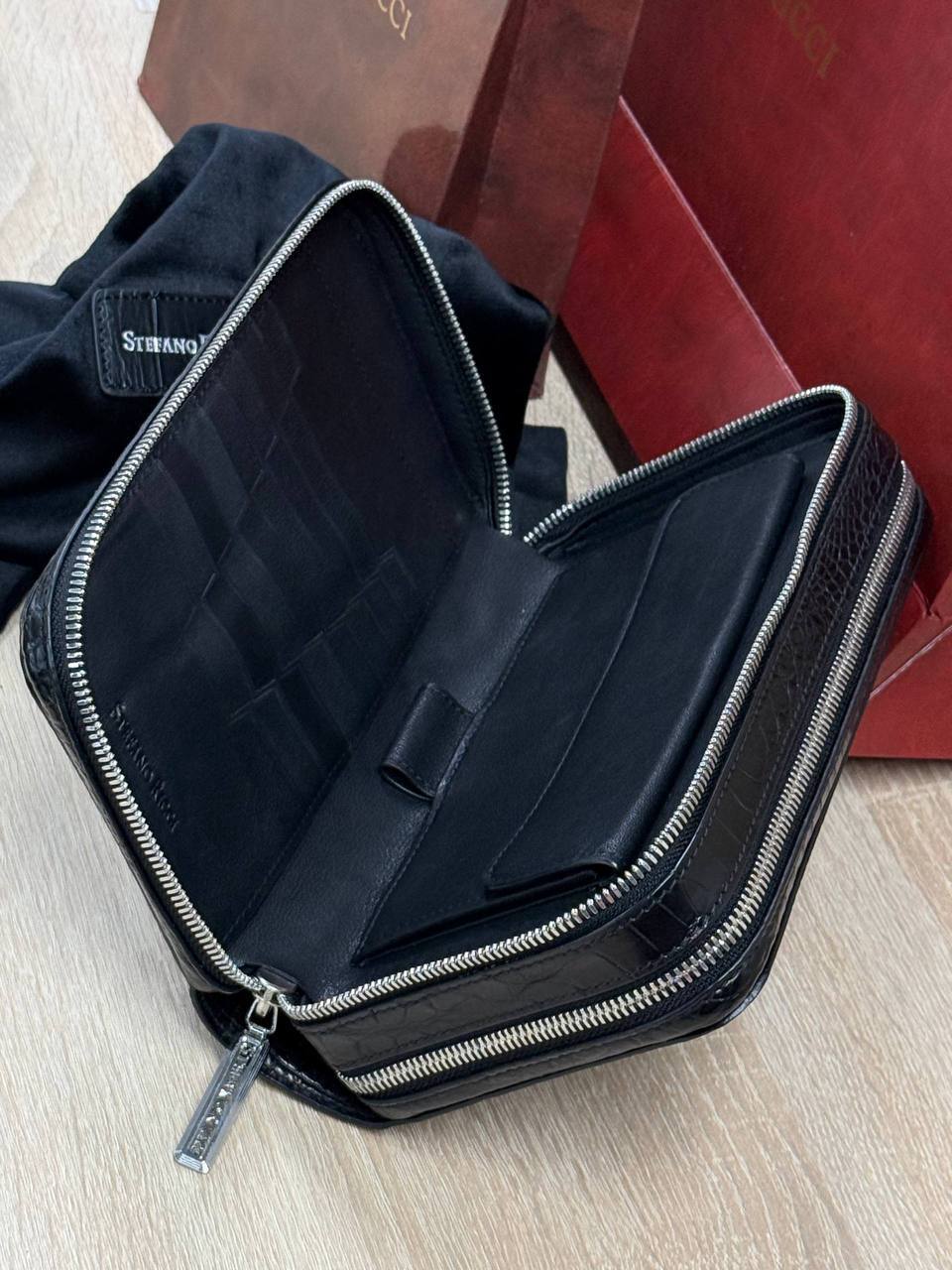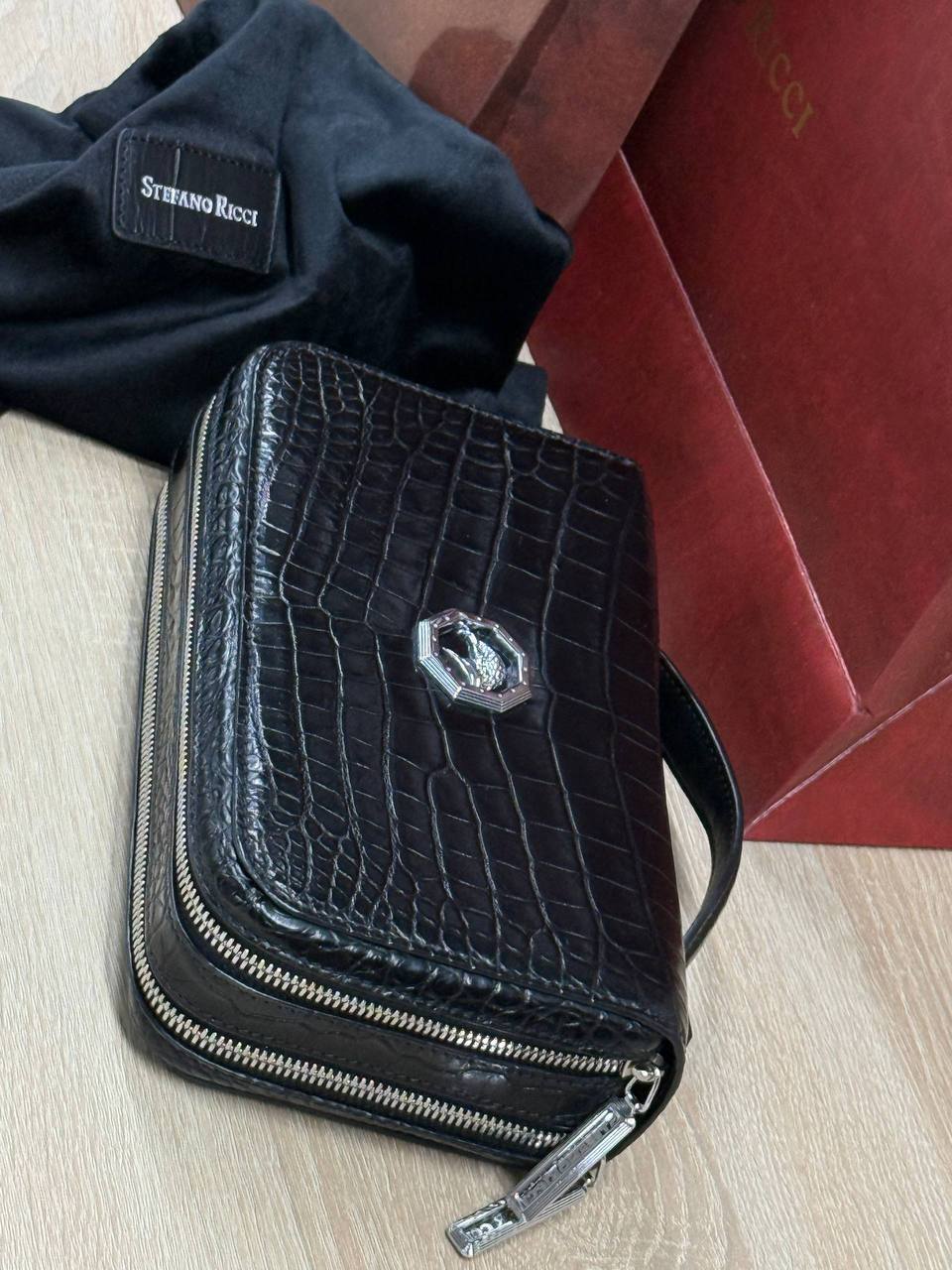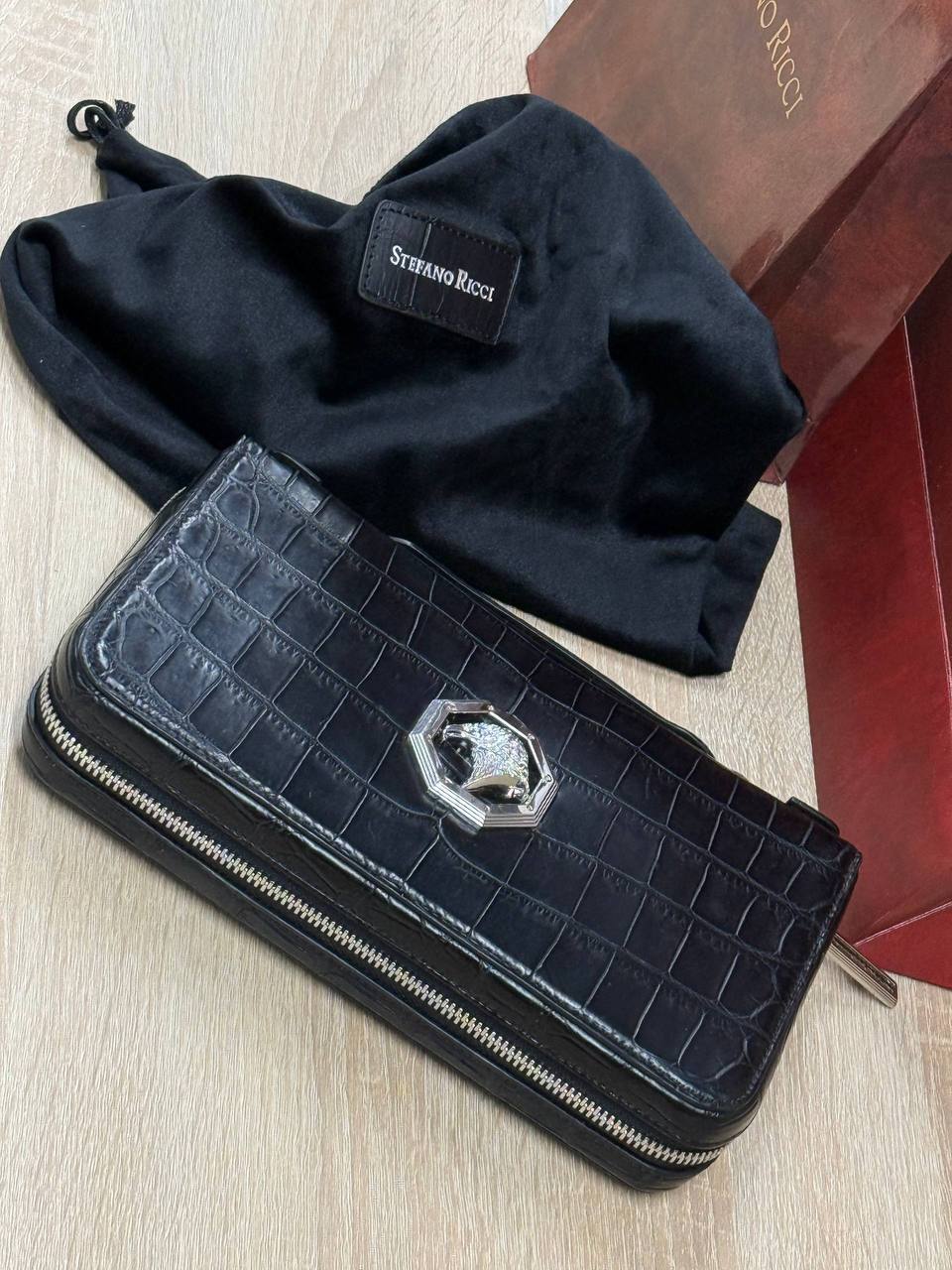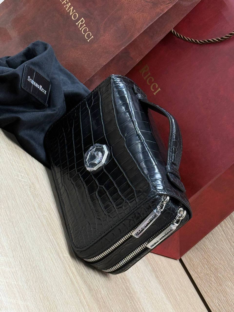 Борсетка от легендарного бренда Stefano Ricci — символ статуса и безупречного вкуса! Изготовлена вручную из эксклюзивной кожи крокодила, что гарантирует долговечность и изысканность. Образ дополняют два удобных отделения на молнии, обеспечивающие порядок и быстрый доступ к вещам и гармоничная ручка. Носите ее как стильный аксессуар, подчеркивающий вашу индивидуальность и престиж.