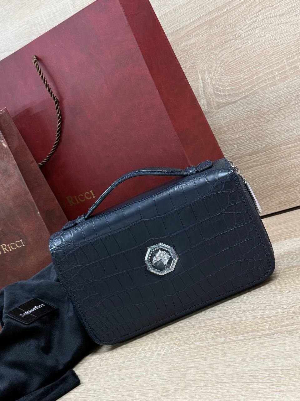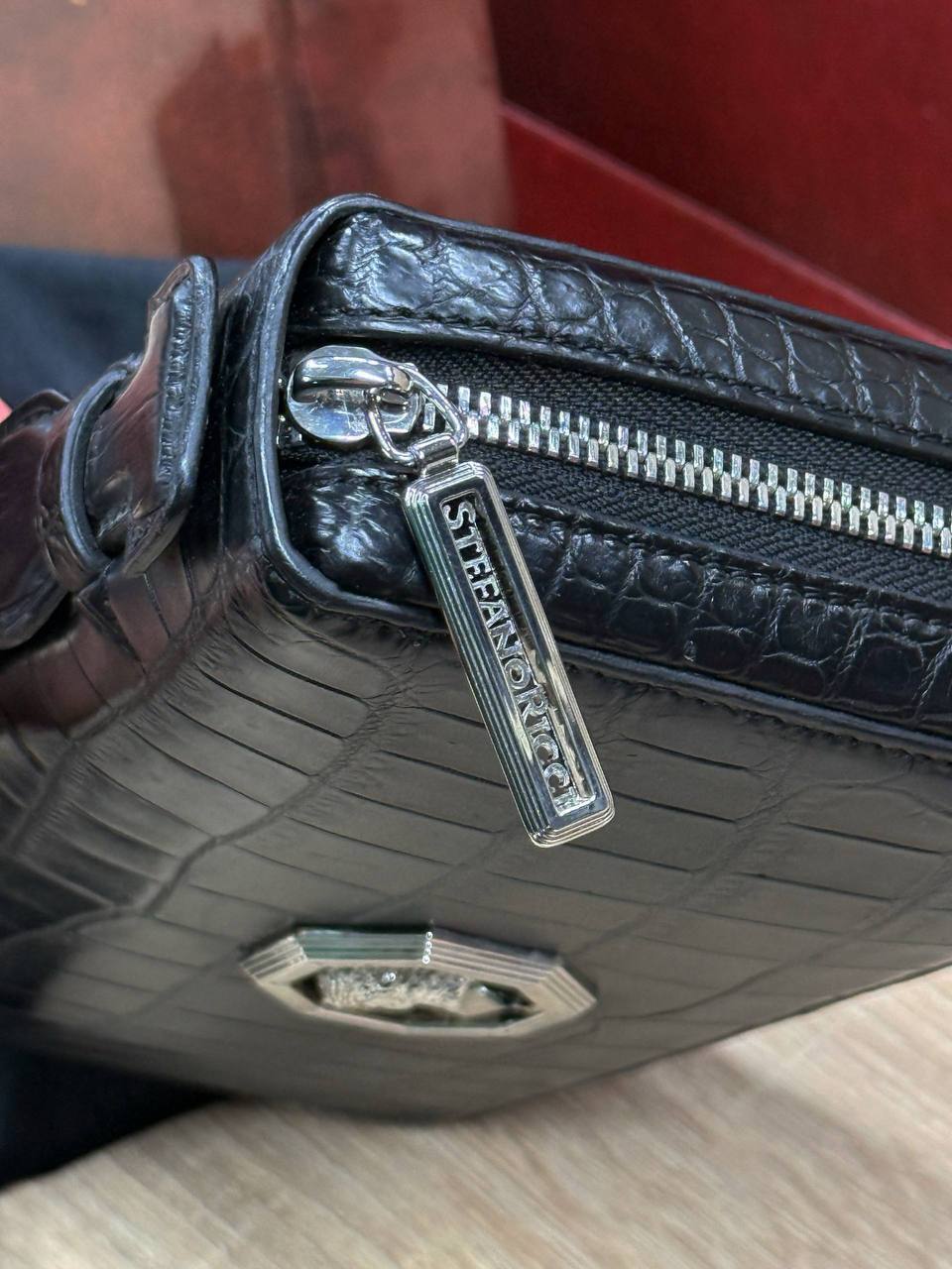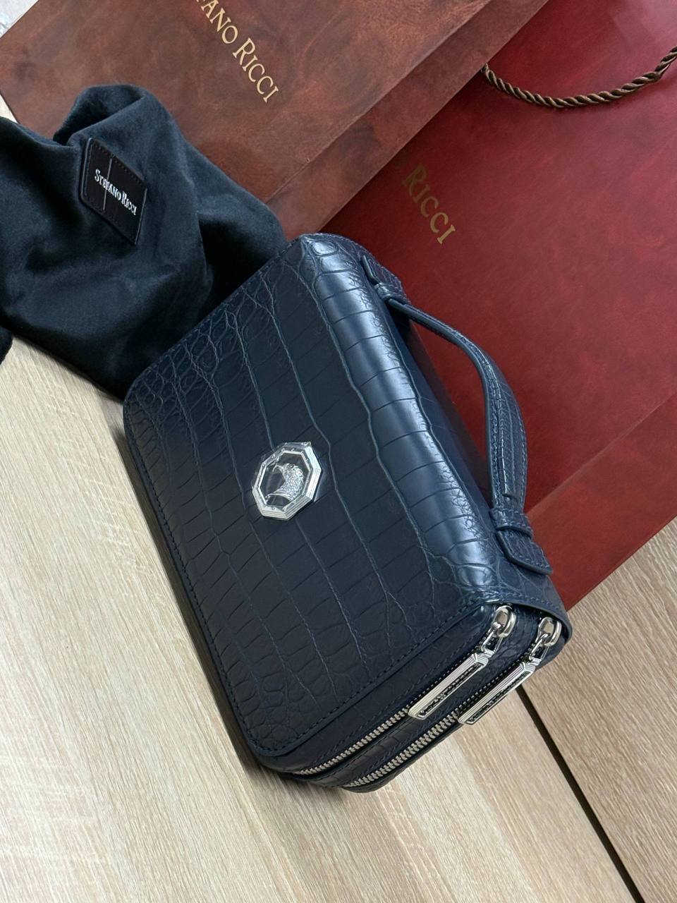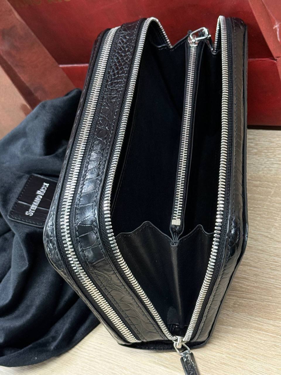 Борсетка от легендарного бренда Stefano Ricci — символ статуса и безупречного вкуса! Изготовлена вручную из эксклюзивной кожи крокодила, что гарантирует долговечность и изысканность. Образ дополняют два удобных отделения на молнии, обеспечивающие порядок и быстрый доступ к вещам и гармоничная ручка. Носите ее как стильный аксессуар, подчеркивающий вашу индивидуальность и престиж.