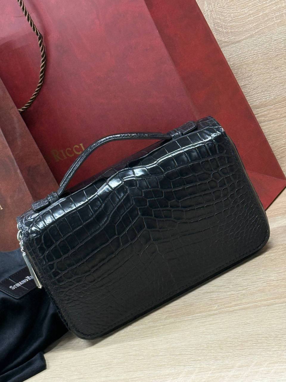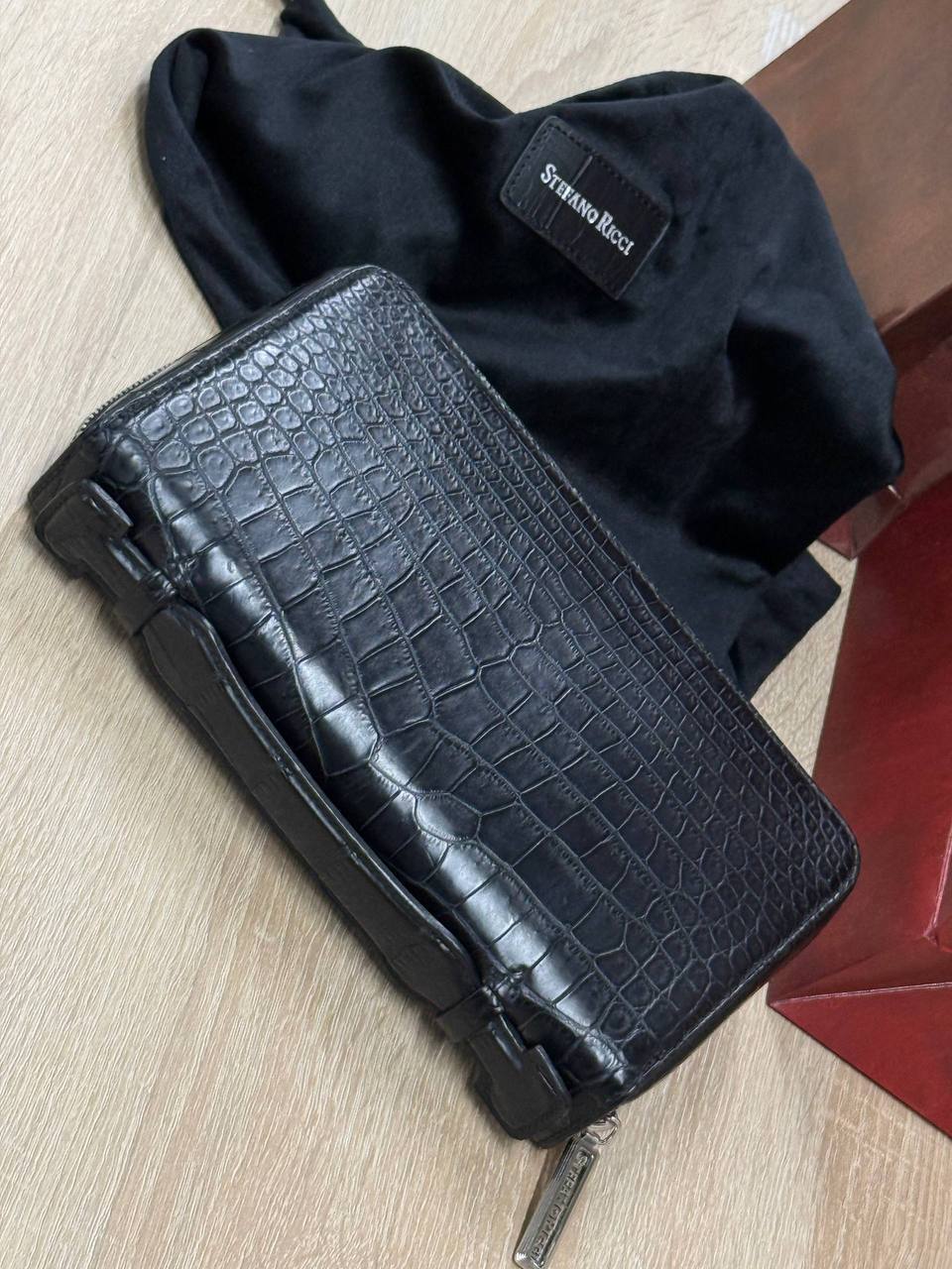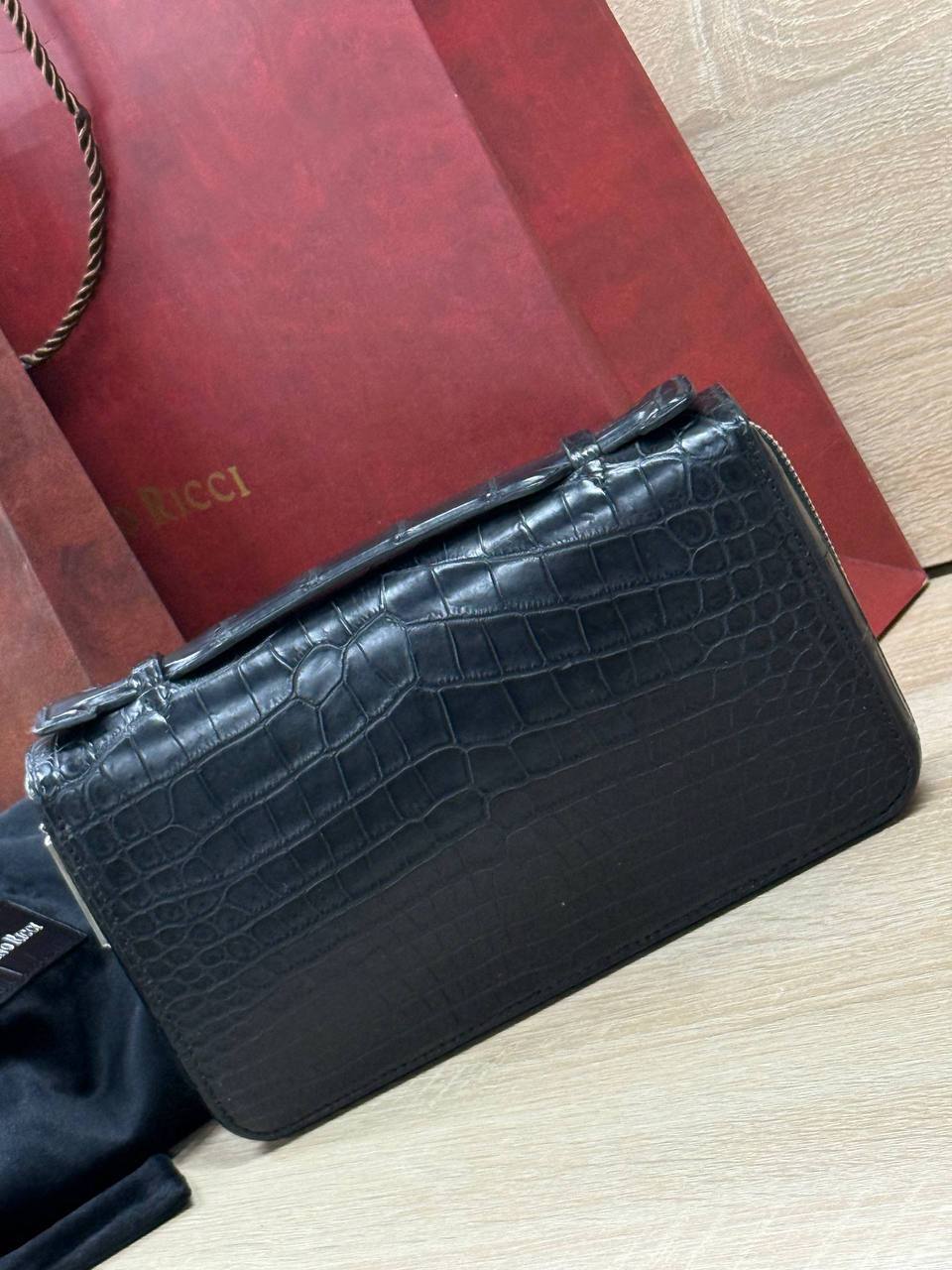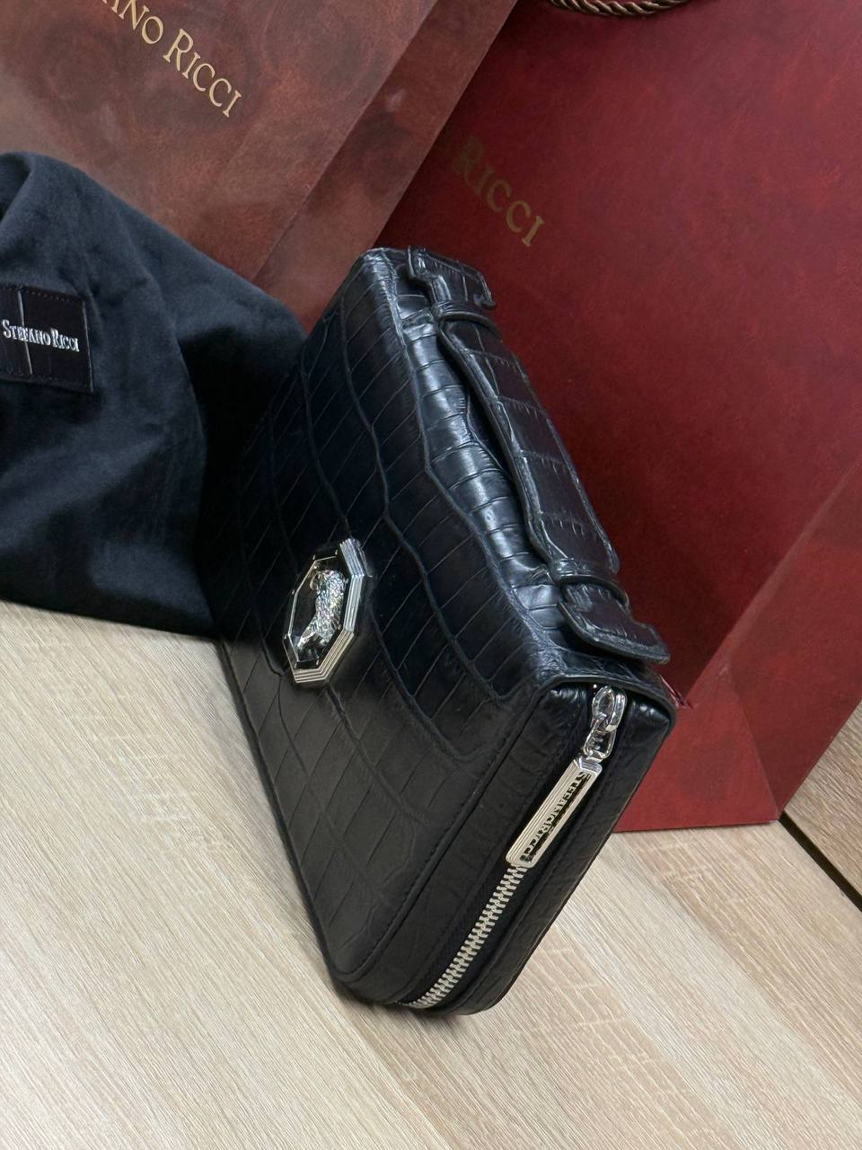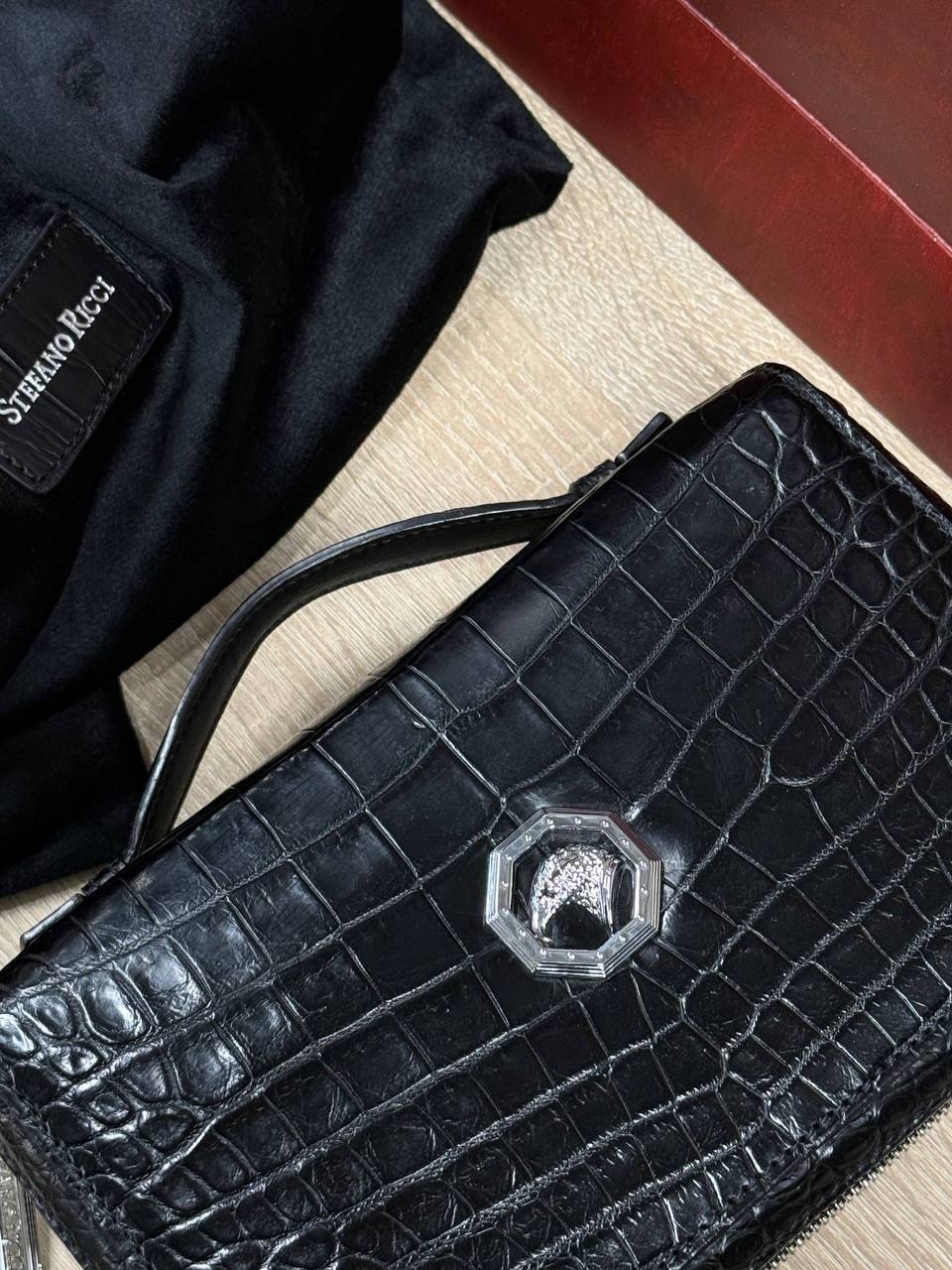 Борсетка от легендарного бренда Stefano Ricci — символ статуса и безупречного вкуса! Изготовлена вручную из эксклюзивной кожи крокодила, что гарантирует долговечность и изысканность. Образ дополняют два удобных отделения на молнии, обеспечивающие порядок и быстрый доступ к вещам и гармоничная ручка. Носите ее как стильный аксессуар, подчеркивающий вашу индивидуальность и престиж.