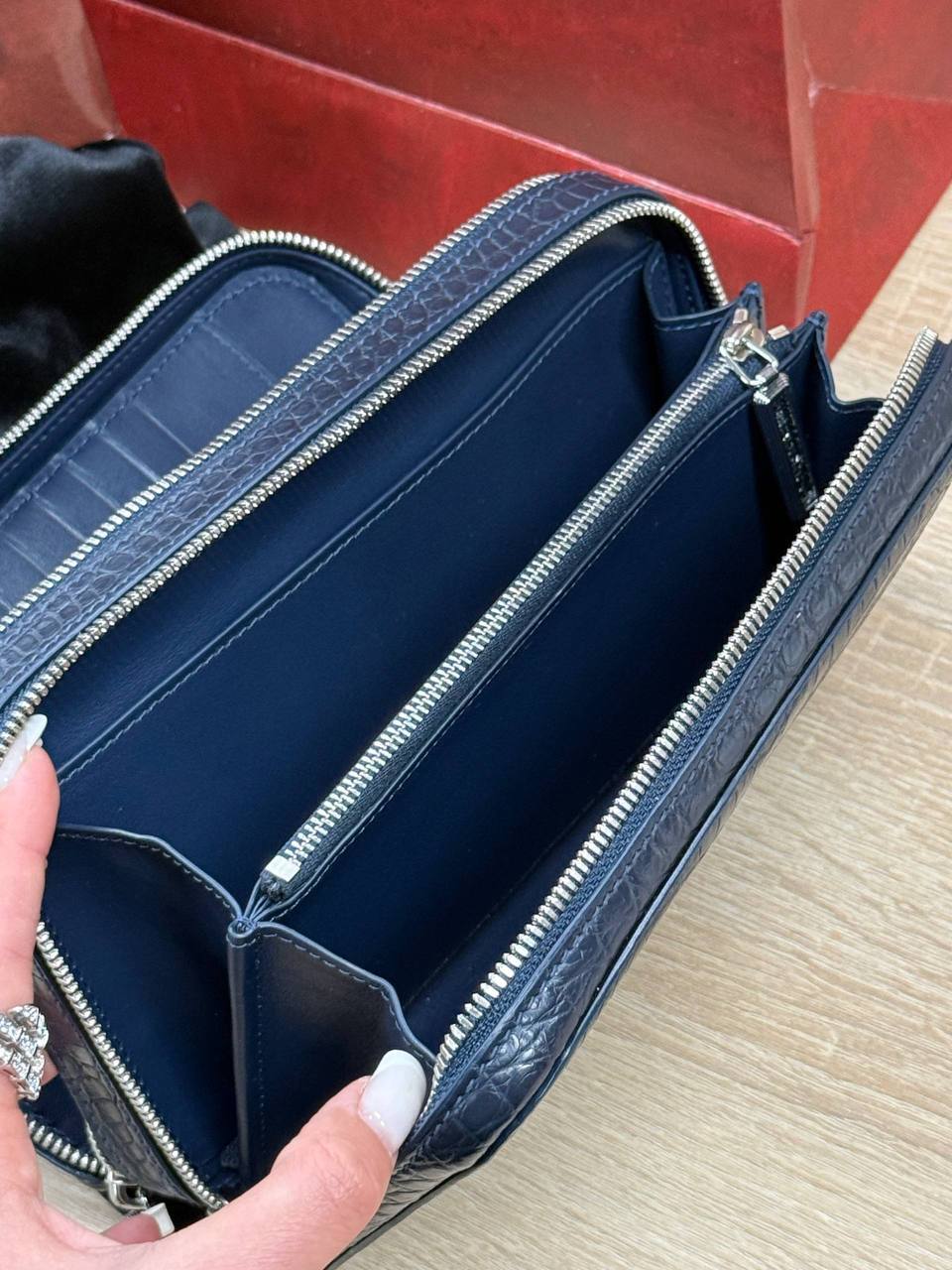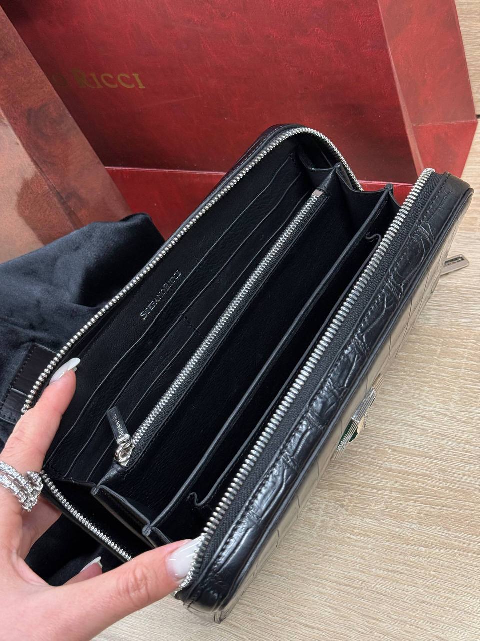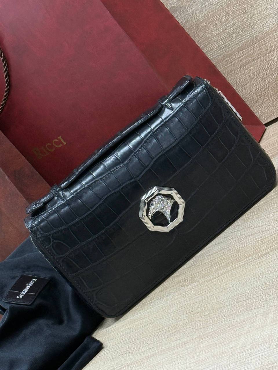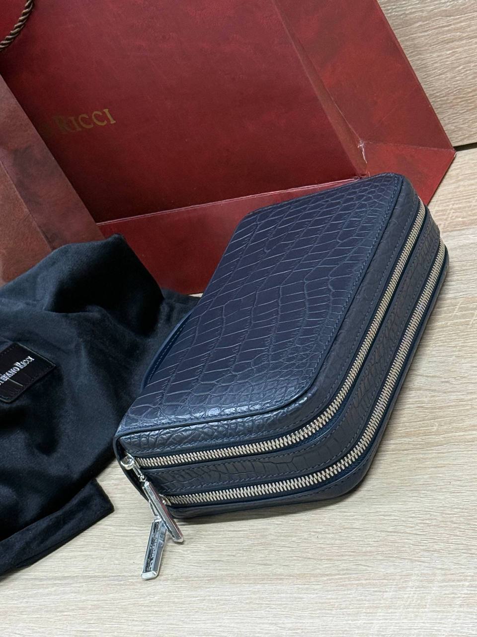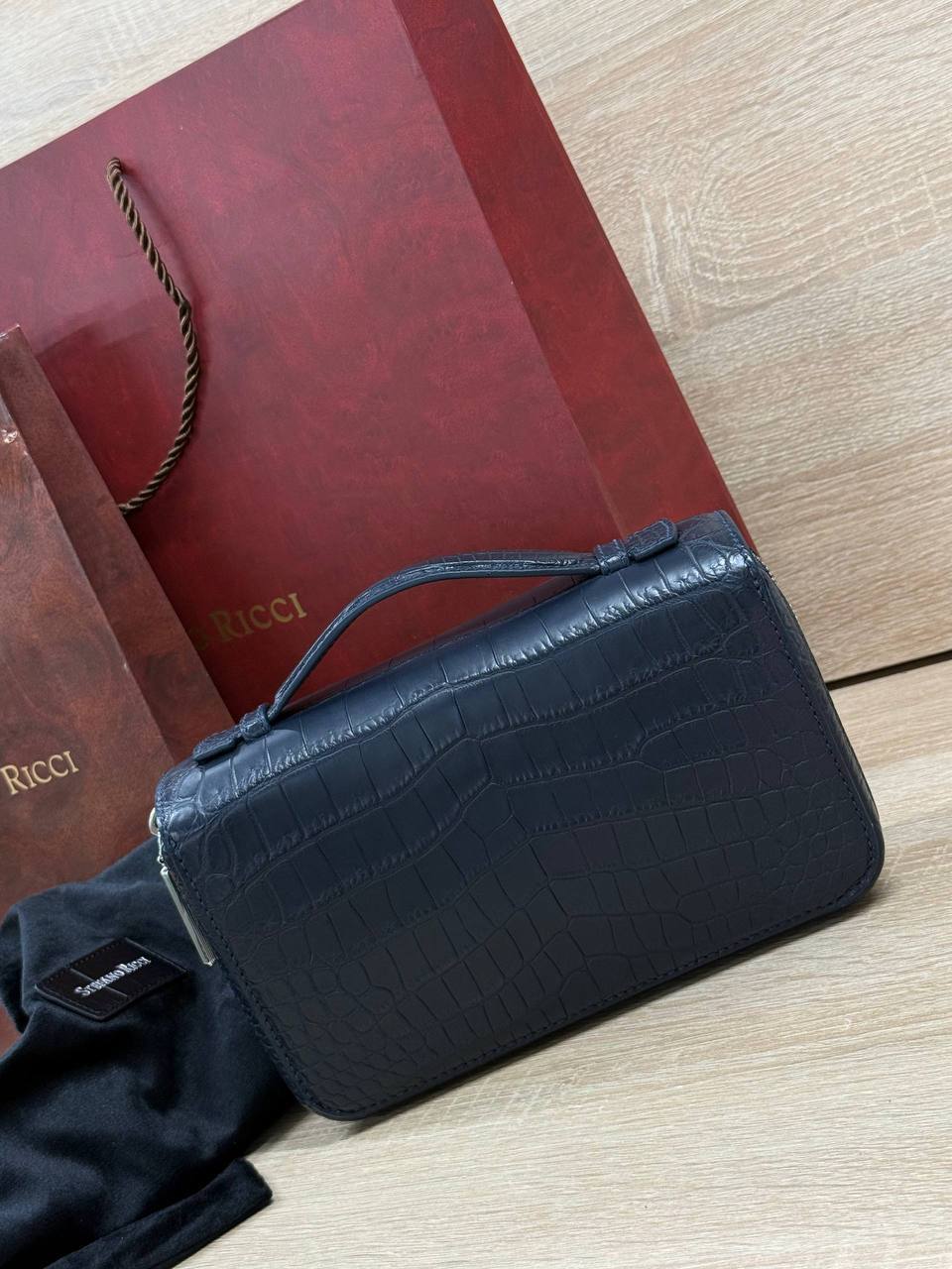 Борсетка от легендарного бренда Stefano Ricci — символ статуса и безупречного вкуса! Изготовлена вручную из эксклюзивной кожи крокодила, что гарантирует долговечность и изысканность. Образ дополняют два удобных отделения на молнии, обеспечивающие порядок и быстрый доступ к вещам и гармоничная ручка. Носите ее как стильный аксессуар, подчеркивающий вашу индивидуальность и престиж.