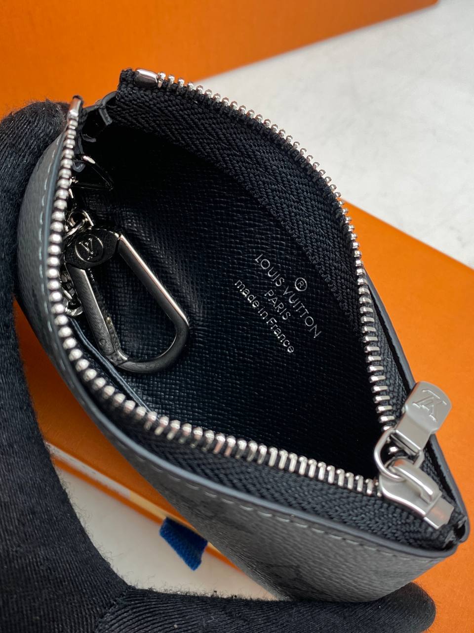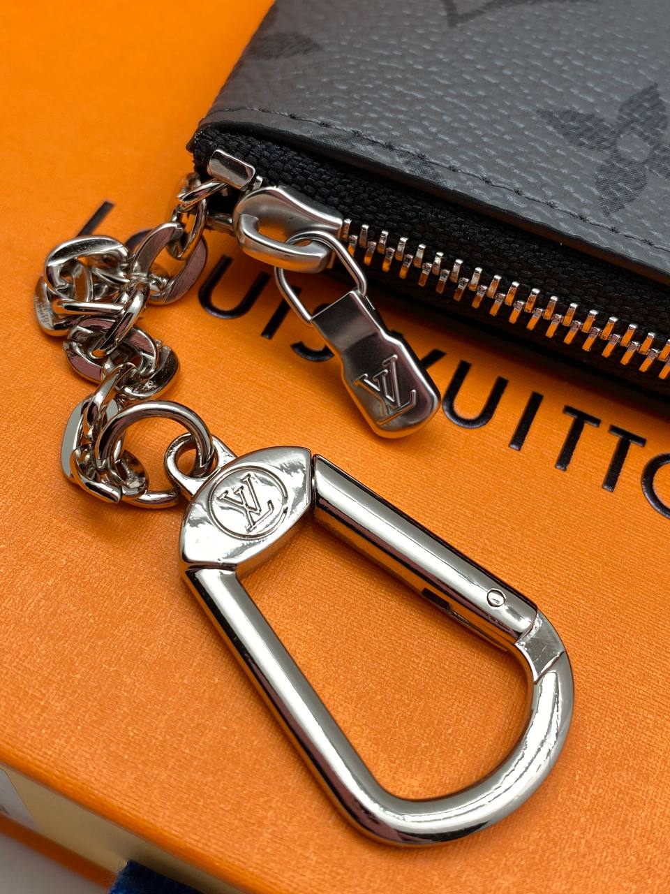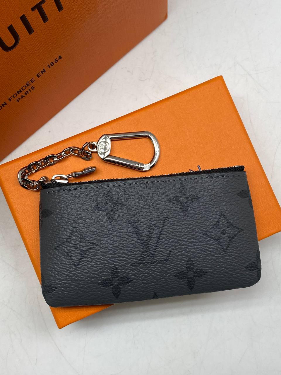 Компактный и практичный чехол для ключей из канвы с фирменным рисунком.