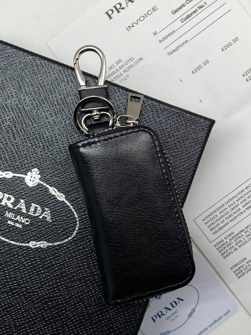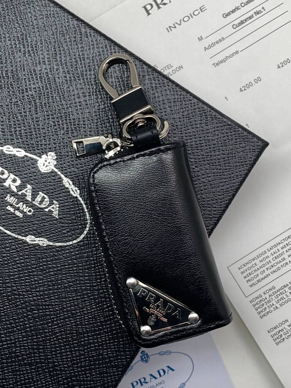 Компактный и практичный чехол для ключей из канвы с фирменным рисунком.