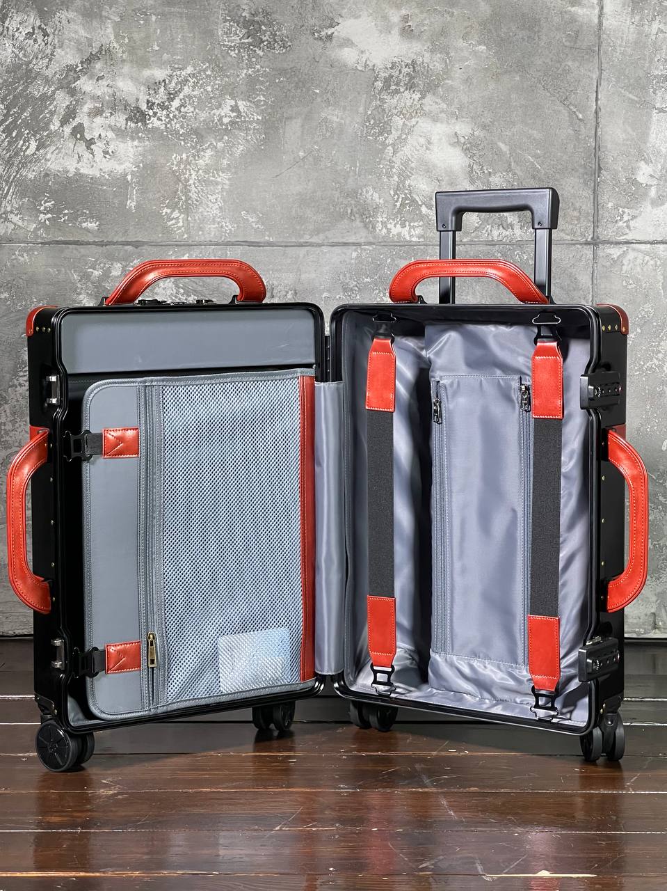 Матовая поверхность и гладкая кожа ручек в сочетании с аккуратной металлической отделкой создают ощущение ручной работы и надежности в чемодане от итальянского бренда.
