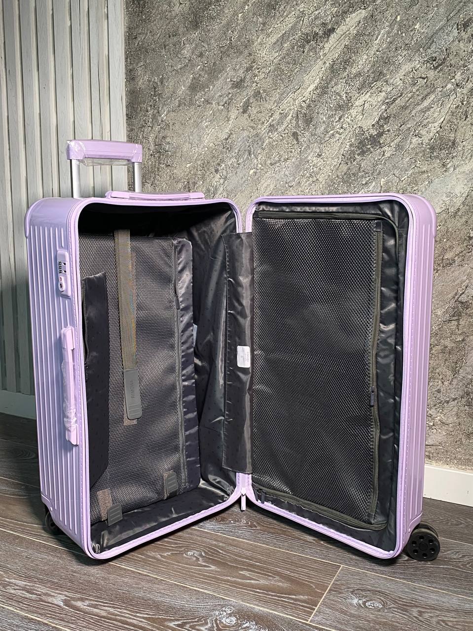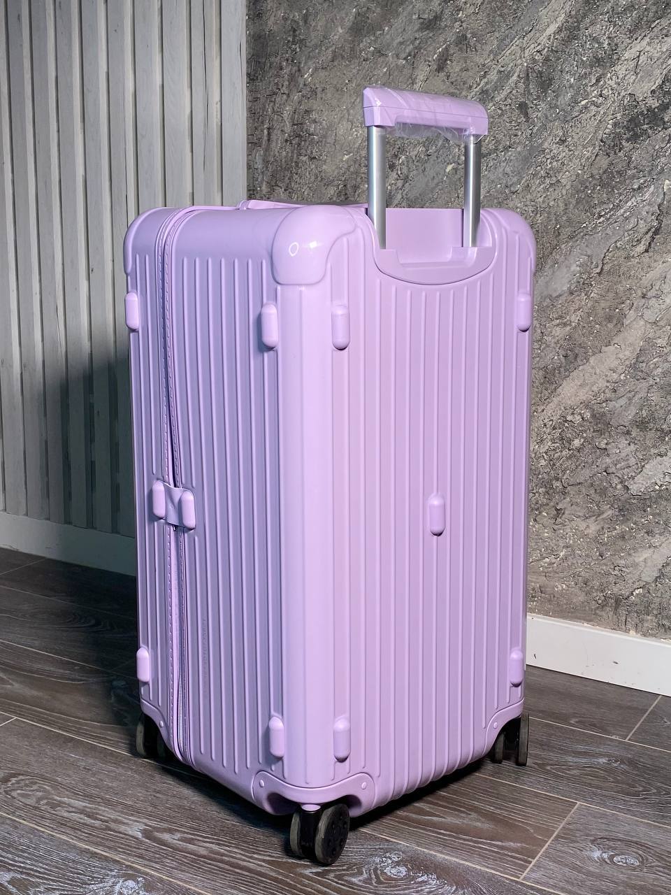 Чемодан в модели Trunk из износостойкого материала в лаконичном стиле, пастельный фиолетовый цвет придаёт свежесть образу, функциональная и модная модель для современных путешественников.