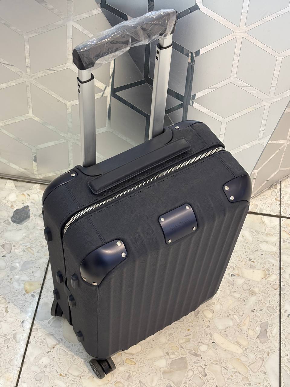 Cabin-size чемодан премиум-класса - легкий металлический корпус в кожаном обрамлении с эргономичной ручкой, бесшумные колеса и TSA-замок. Элегантный скандинавский минимализм в стиле luxury travel accessories.