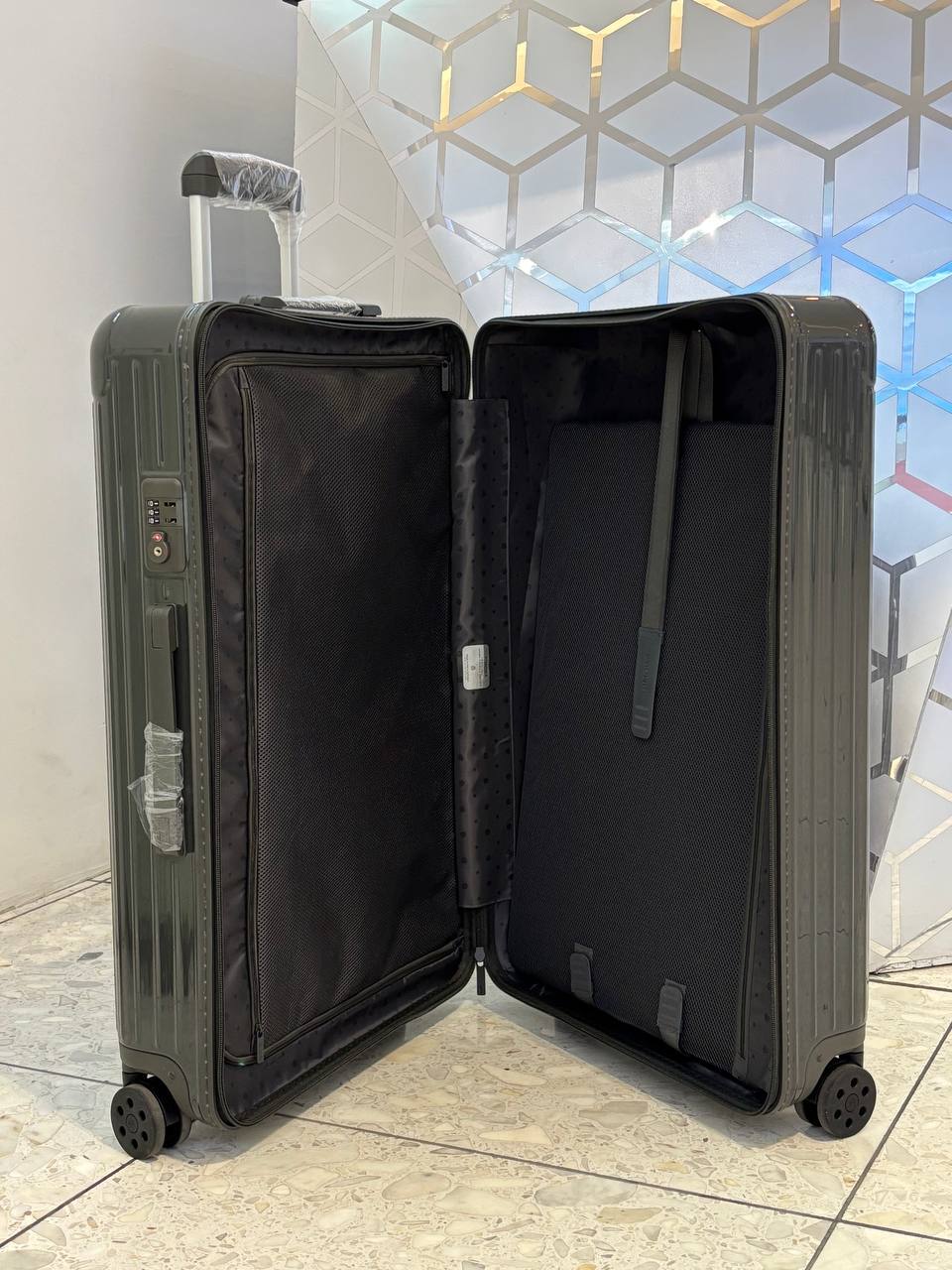 Пластиковый чемодан в фирменном стиле премиальных брендов багажа. Узнаваемый дизайн с продольными канавками, характерный для элитных коллекций дорожных аксессуаров.