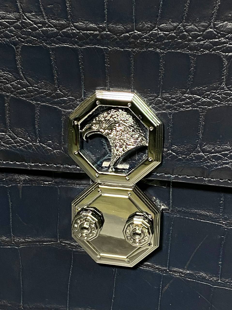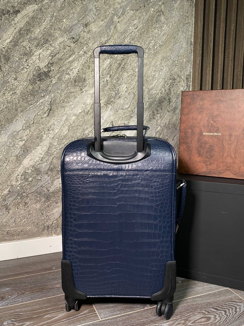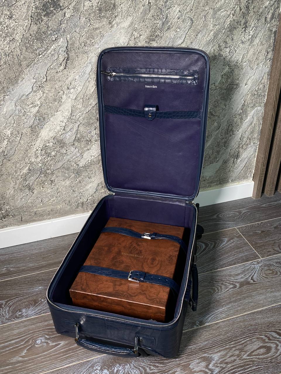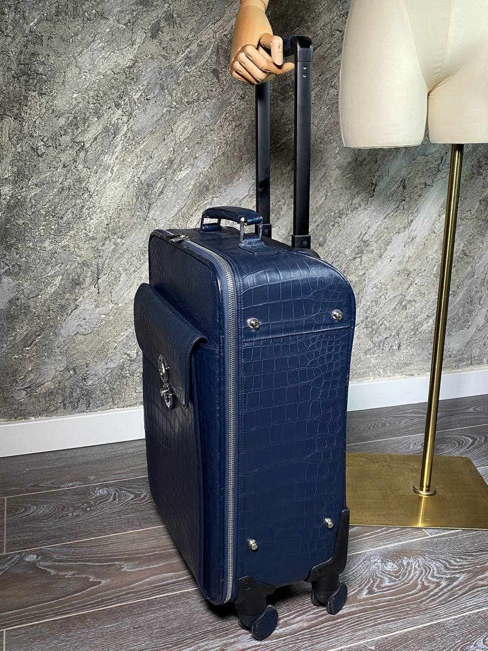 Премиальный чемодан на колесах от известного итальянского брендав темно-синем цвете из крокодиловой кожи, сочетающий в себе изысканность, функциональность и безупречное качество исполнения.