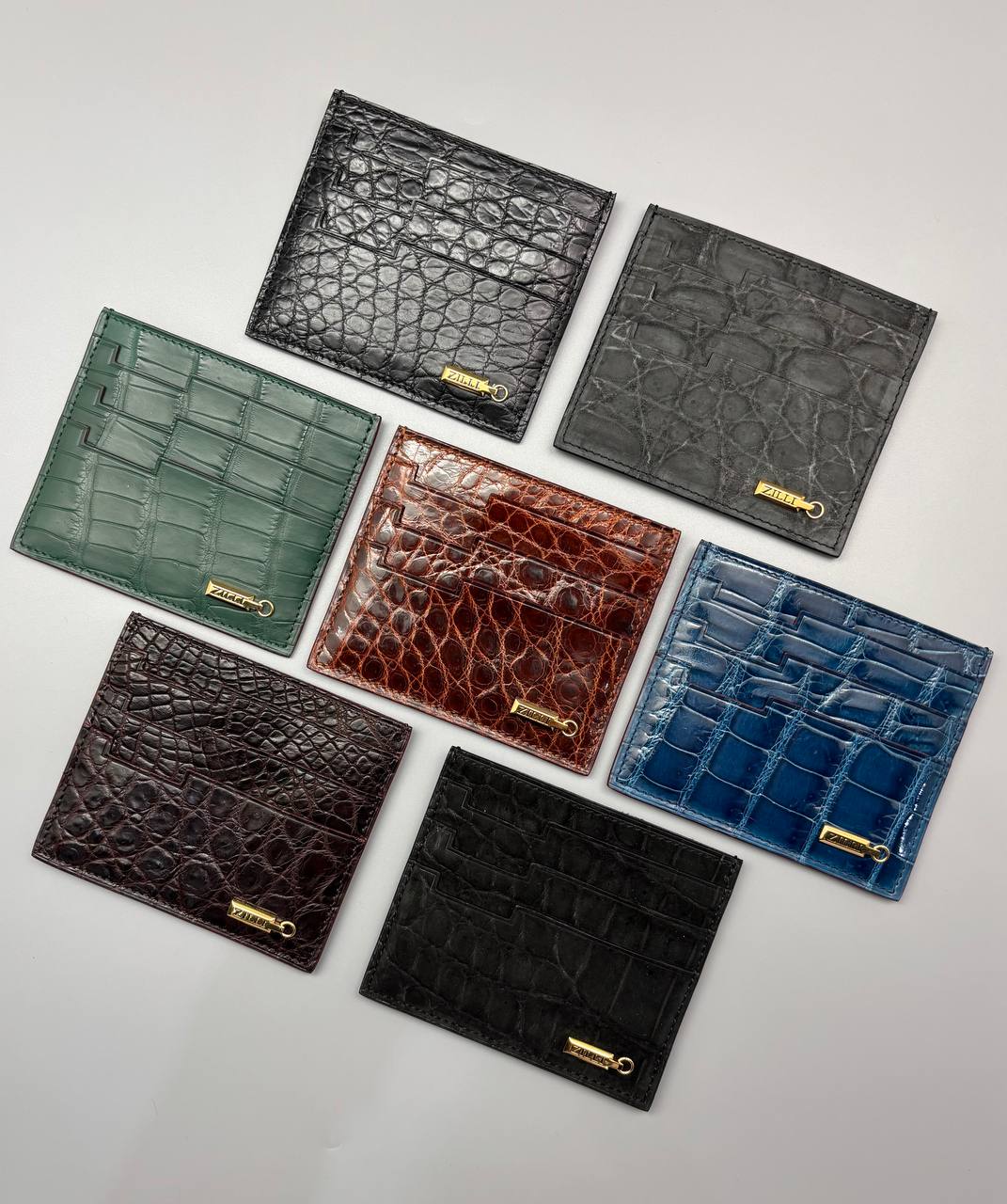 Компактный кардхолдер из натуральной кожи крокодила в разных цветах— роскошь в каждом шве, лёгкий блеск патинированной фактуры и миниатюрный золотой шильдик создают образ уверенного вкуса.
