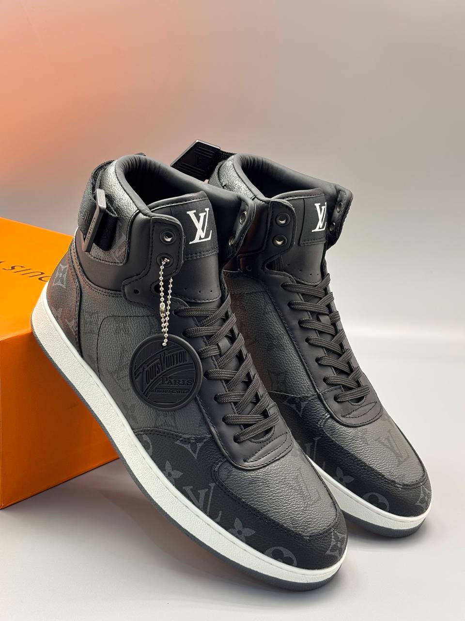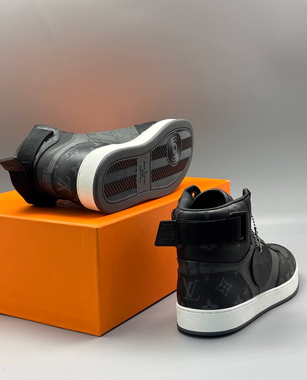 Черные кожаные кеды с тонким тиснением монограммы — городская элегантность и комфорт на каждый день.