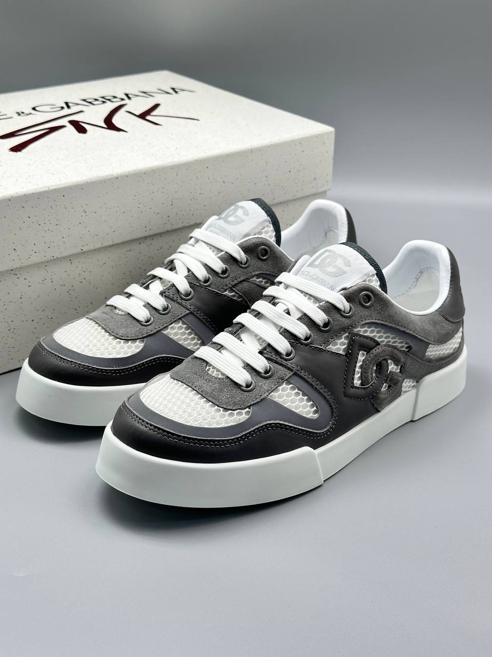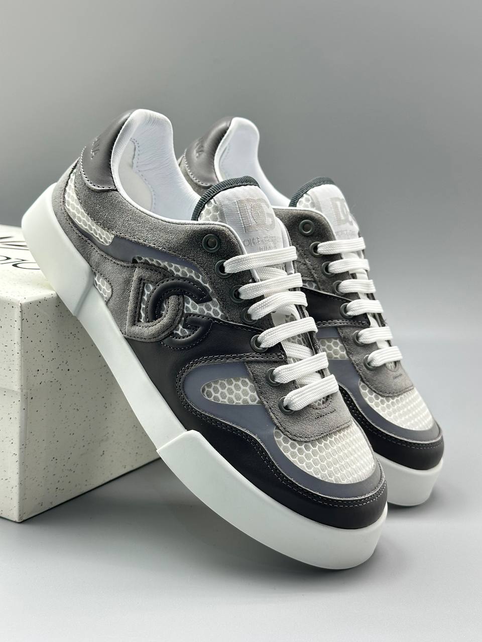 Низкие кеды в нейтральных тонах - городская обувь с контрастной шнуровкой, многослойная конструкция из замши и сетчатых вставок.