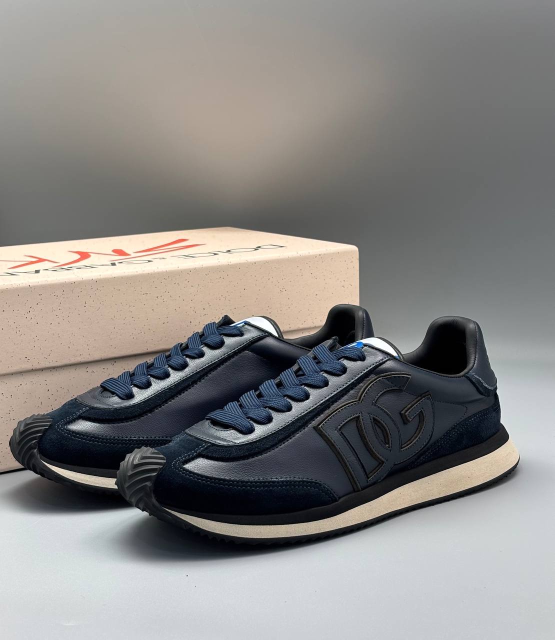 Насыщенный темно‑синий, изящный дуэт гладкой кожи и бархатистой замши — кроссовки, которые превращают каждый шаг в маленький ритуал стиля. Легкая рифлёная подошва дарит комфорт с утра до вечера.