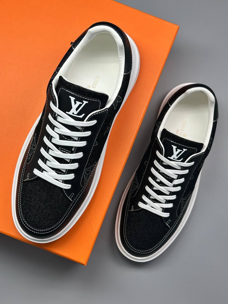 Кеды из плотного денима и мягкой кожи — гармония премиальных материалов и фирменного стиля. Контрастная строчка подчёркивает изысканный дизайн, превращая каждое движение в декларацию вкуса.