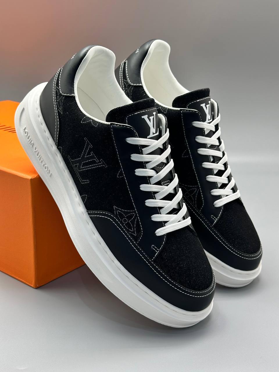 Кеды из плотного денима и мягкой кожи — гармония премиальных материалов и фирменного стиля. Контрастная строчка подчёркивает изысканный дизайн, превращая каждое движение в декларацию вкуса.