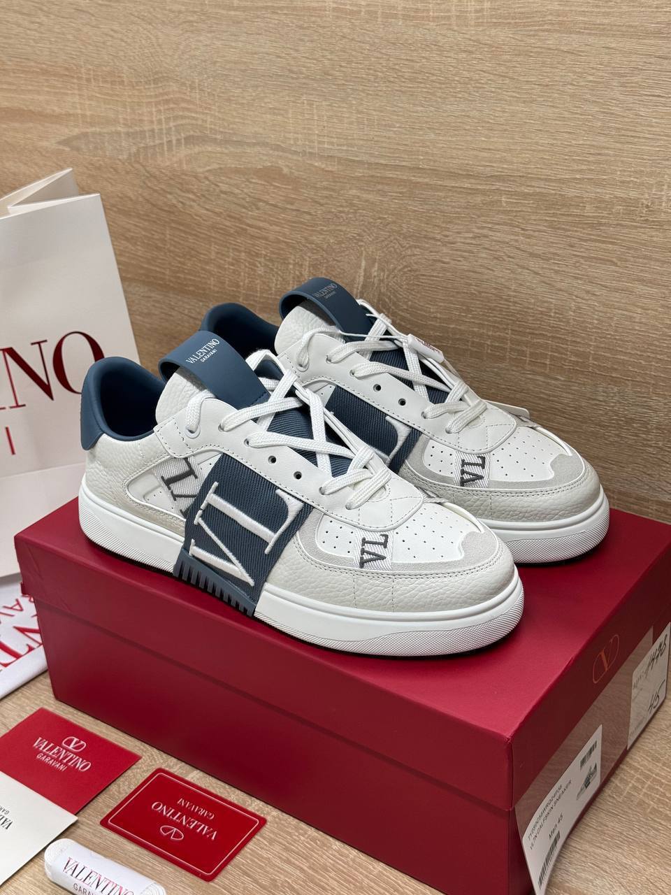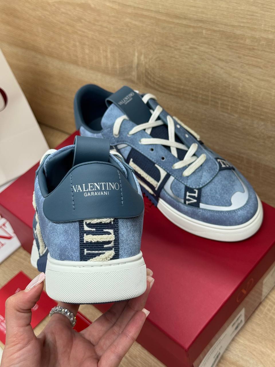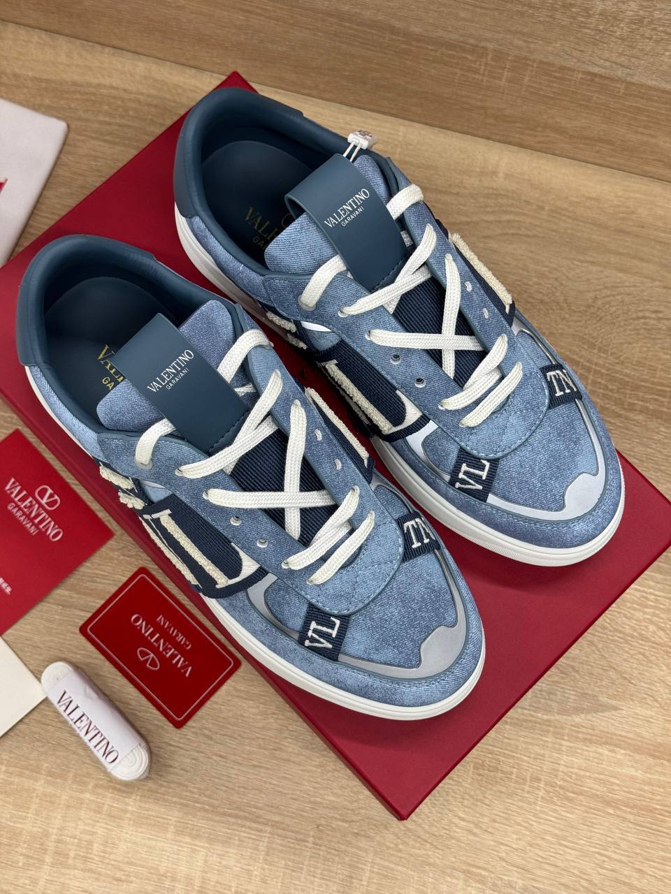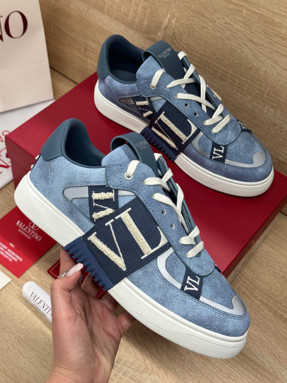 Элегантное сочетание белой кожи и джинсовой ткани в дизайнерских кроссовках от культового бренда.