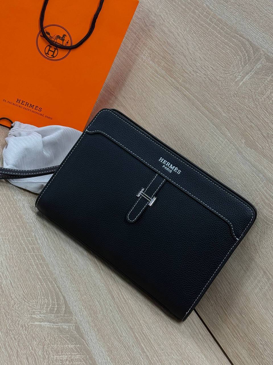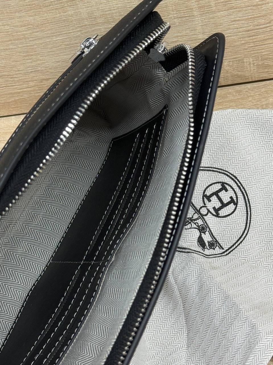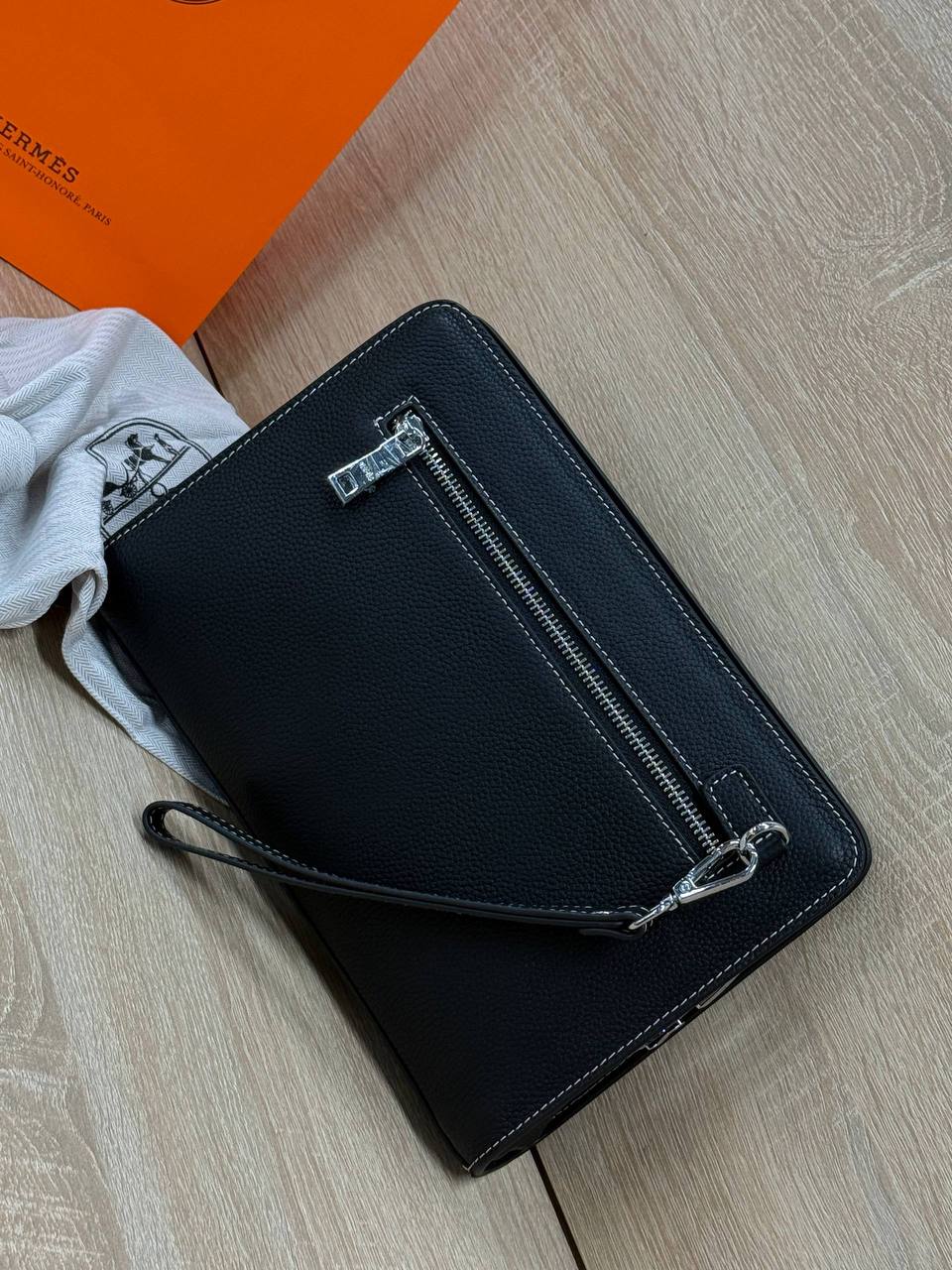 Откройте для себя элегантность и изысканность клатча Hermès — истинного символа статуса и вкуса! Изготовленный из натуральной мягкой черной кожи, он подчеркивает вашу индивидуальность и безупречный стиль. Удобный кистевой ремень позволяет носить его с максимальным комфортом. Этот аксессуар станет вашим верным спутником как днем, так и вечером, добавляя шарма любому образу. Присоединяйтесь к миру роскоши уже сегодня!