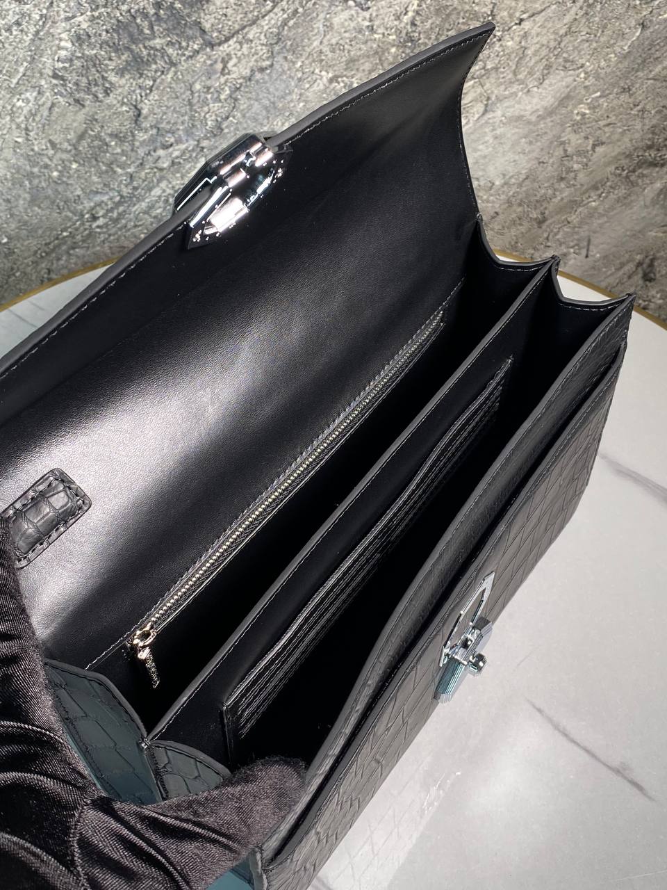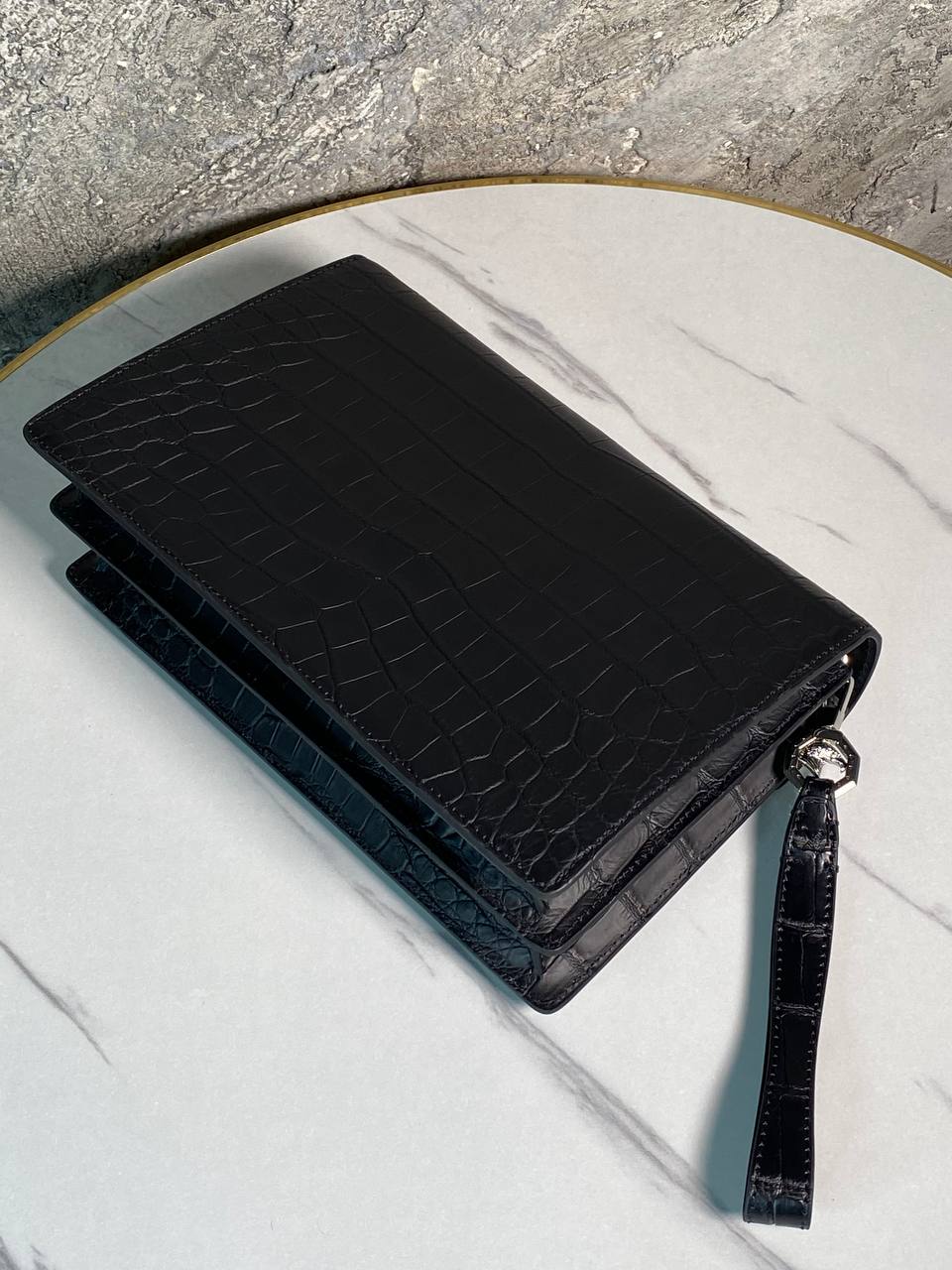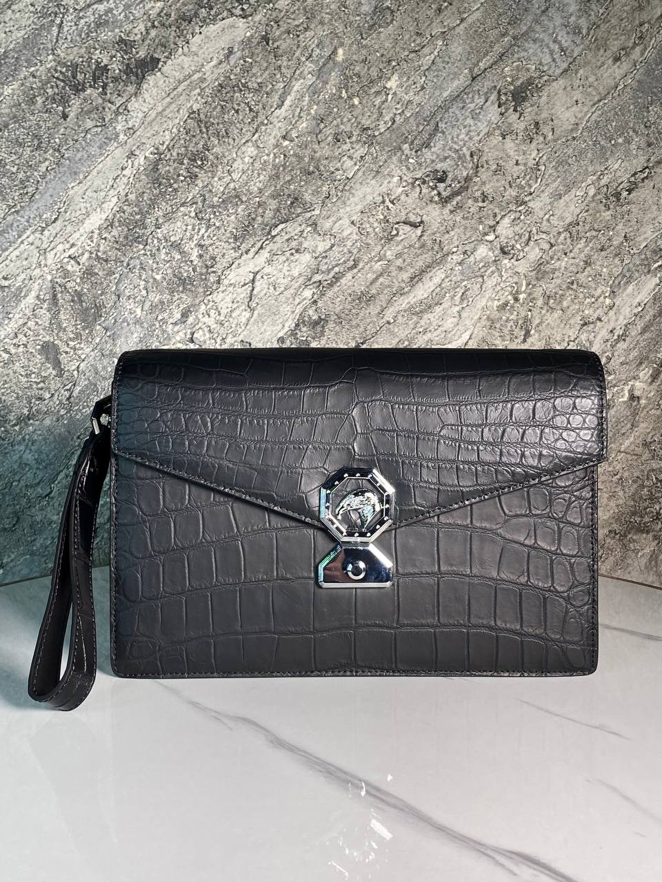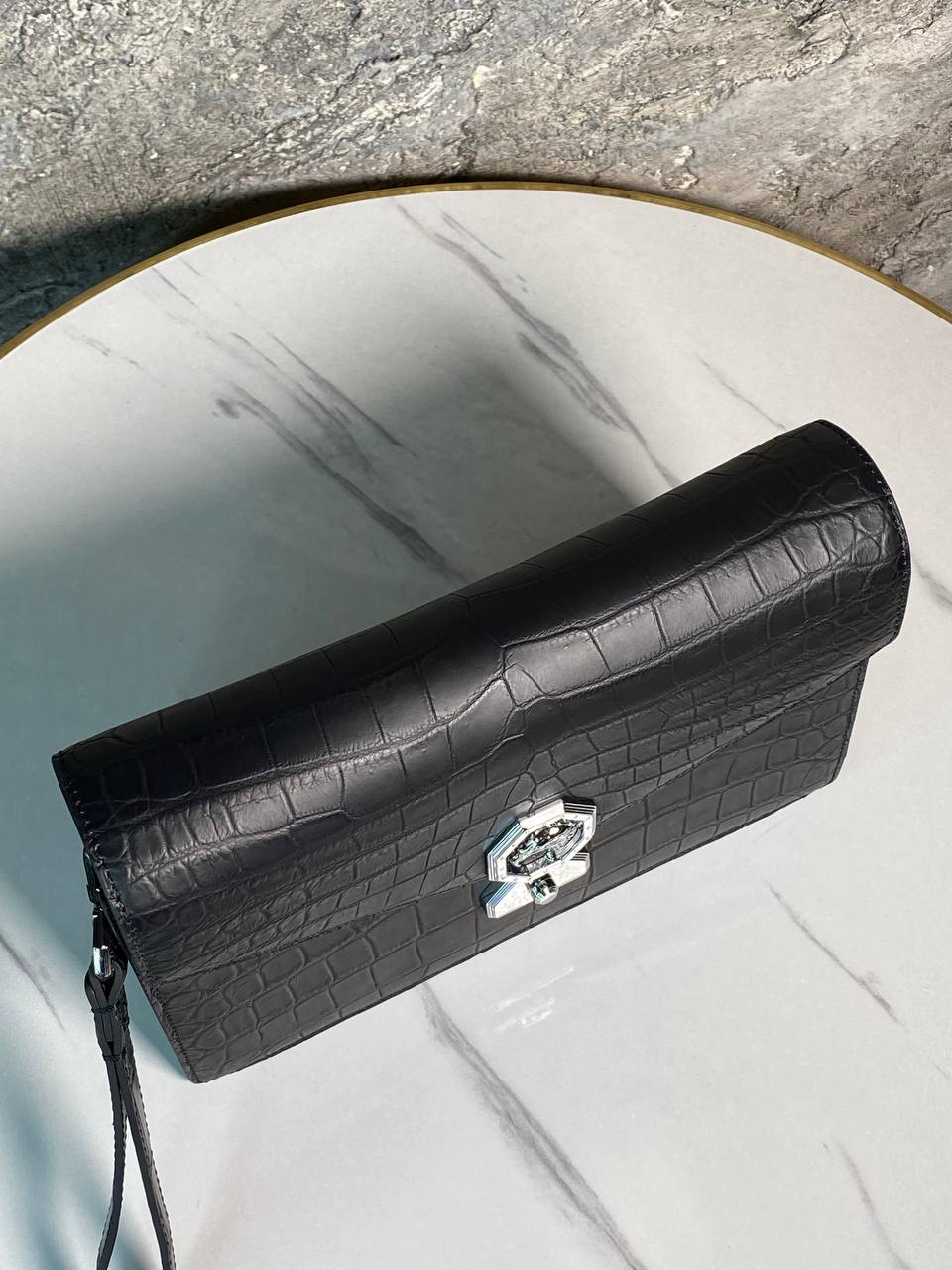 Стильный клатч из крокодиловой кожи с металлической застежкой - роскошный аксессуар для особых случаев.
