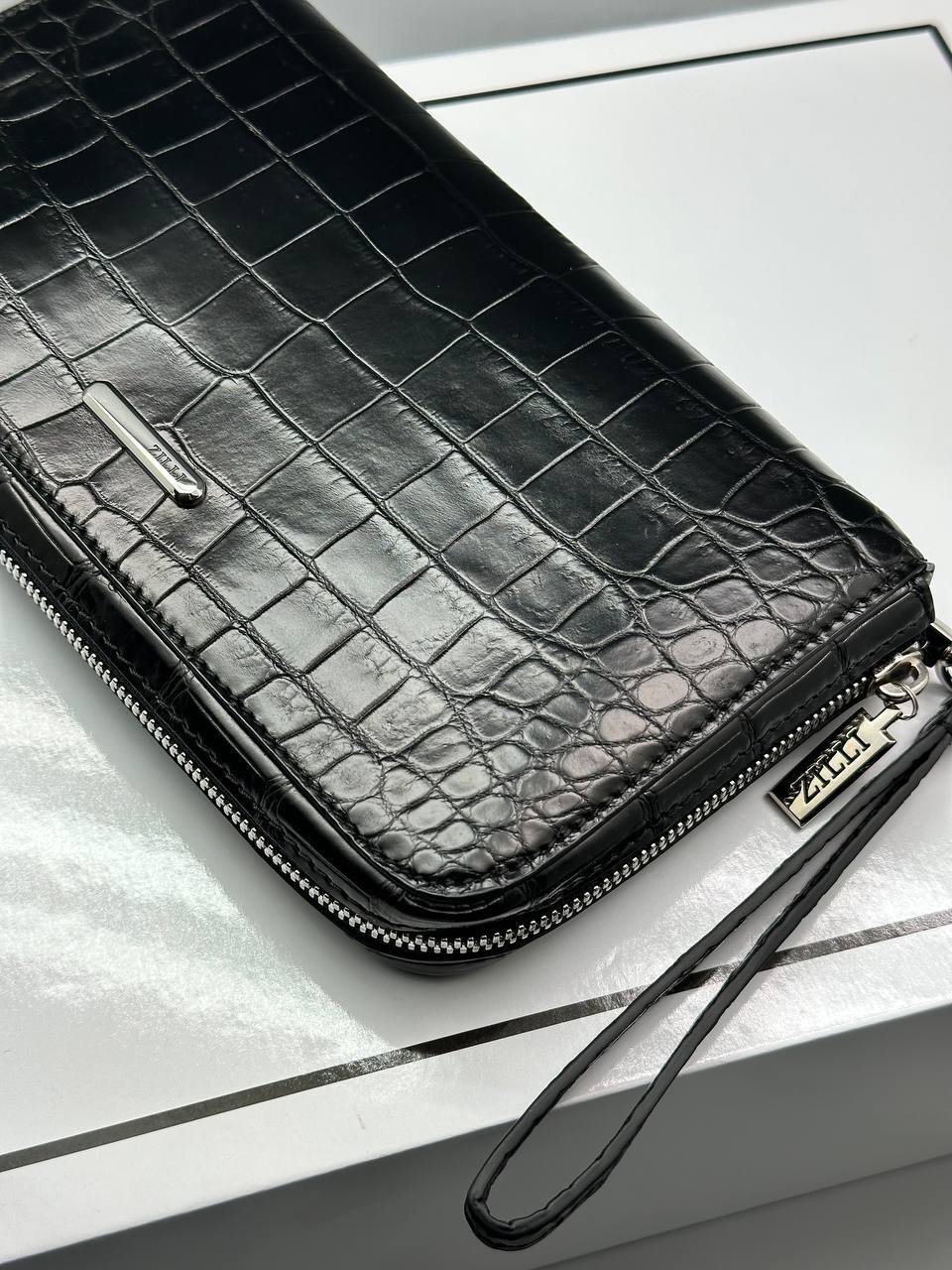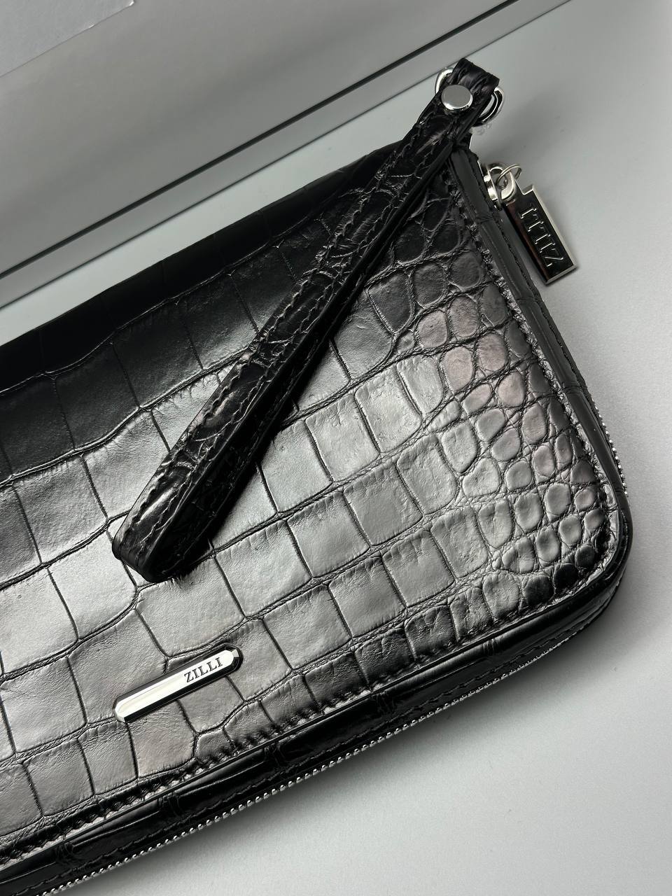 Стильный клатч из натуральной кожи крокодила с характерной фактурой и лаконичным дизайном - для ценителей люксовых аксессуаров.