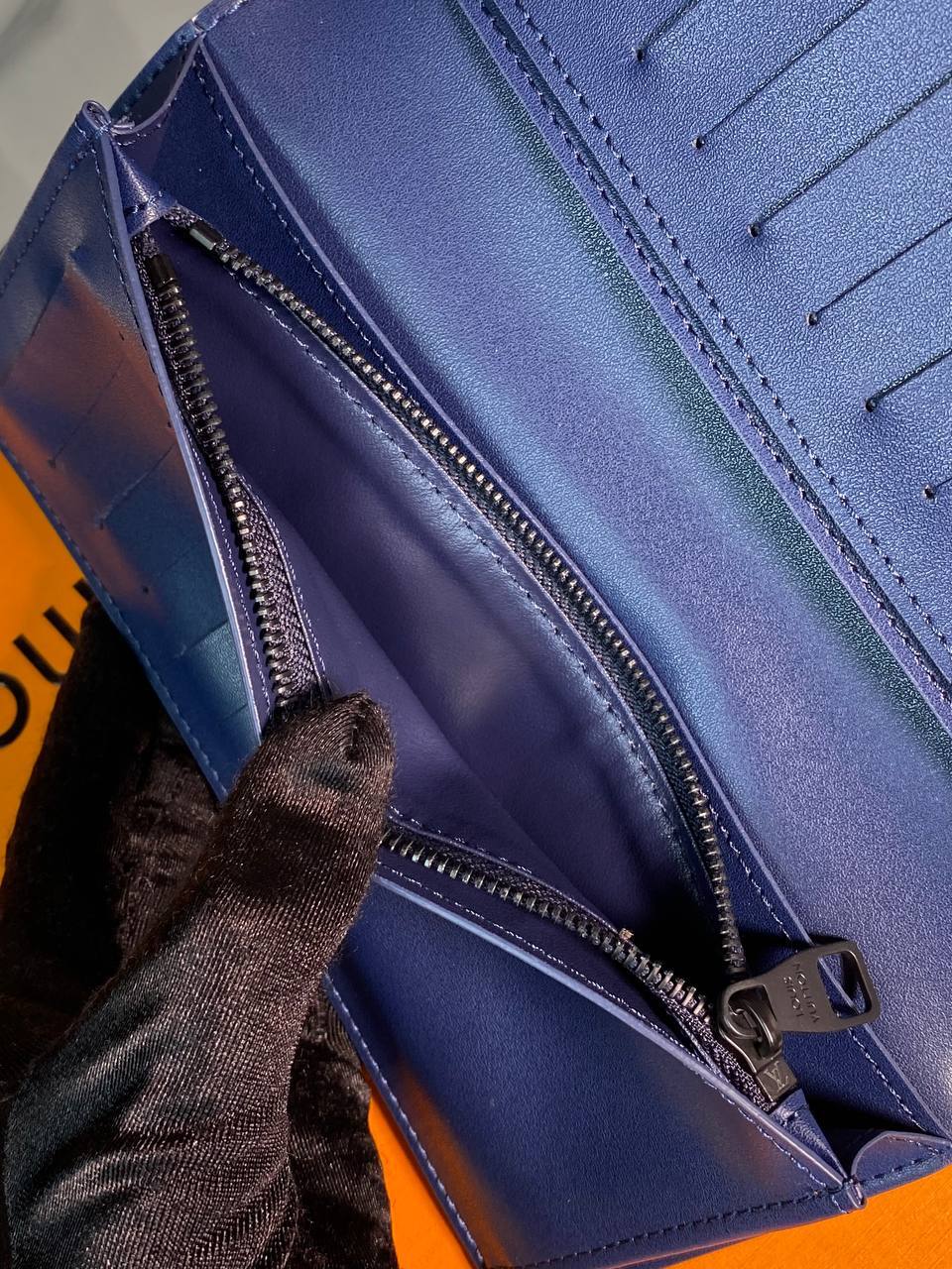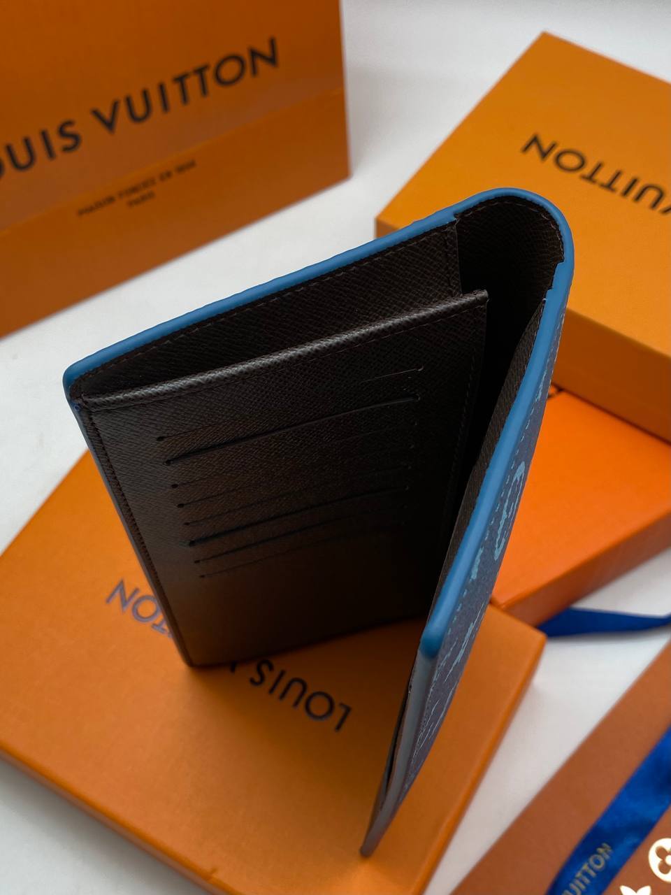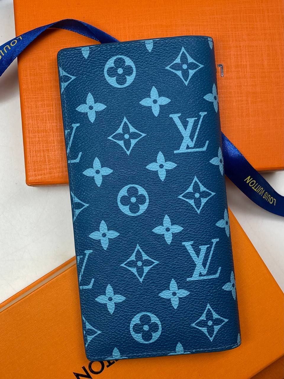 Длинный кошелек Louis из канвы с фирменным принтом и насыщенным голубым кантом - изысканное дополнение образа с нотками французского шика.