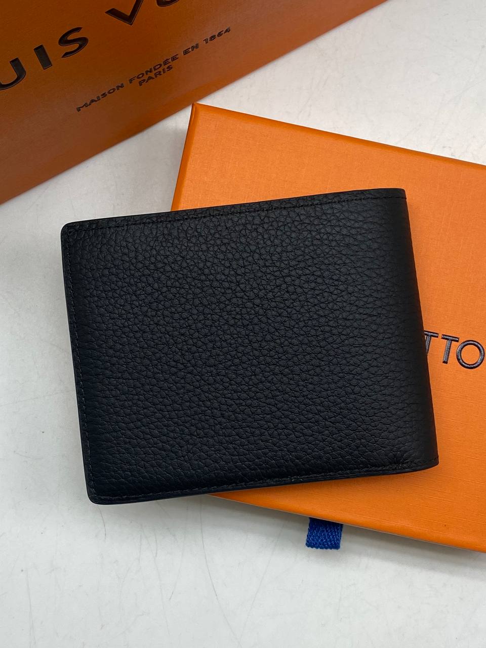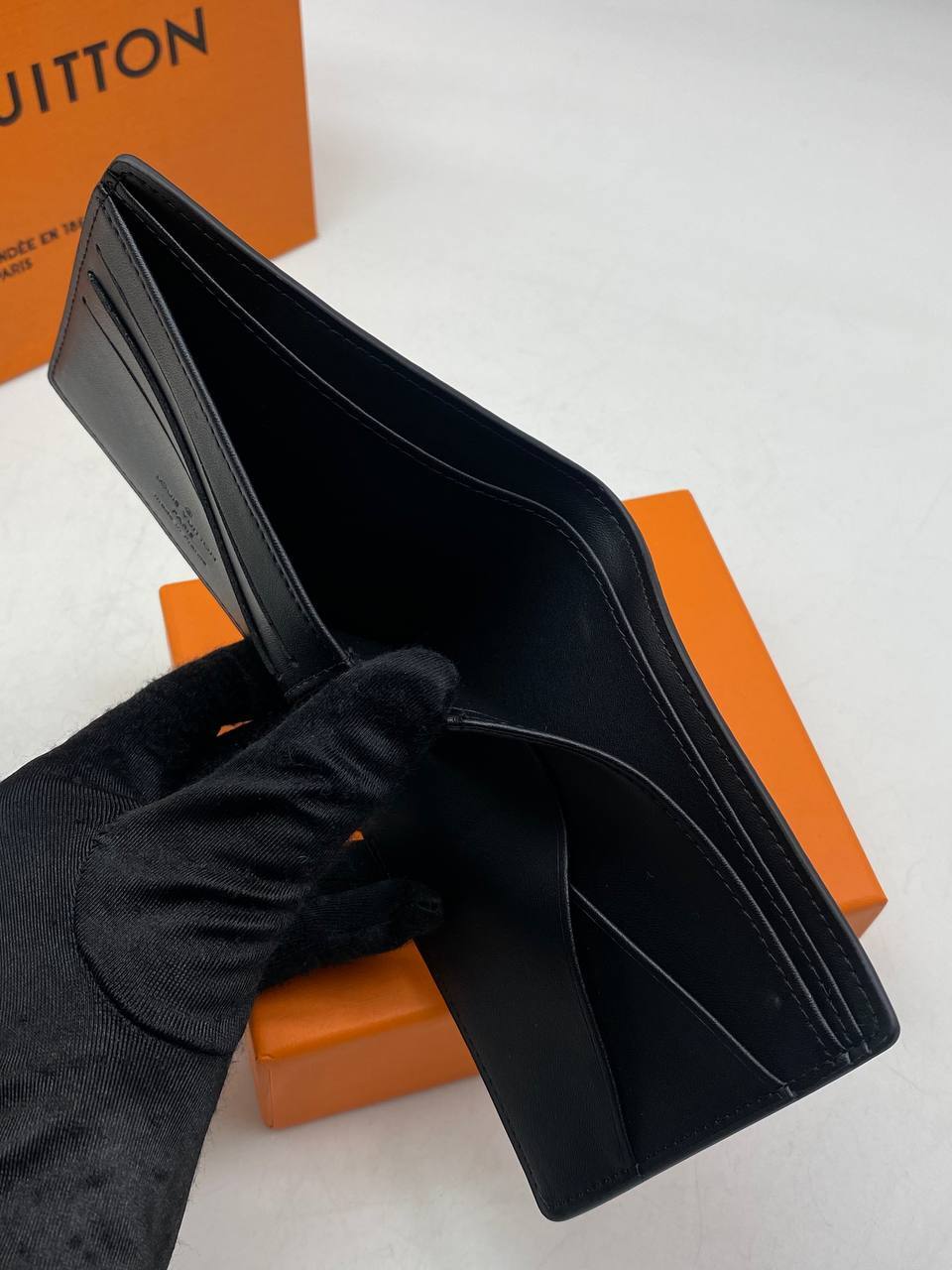 Мужской кошелек из качественной черной кожи с тисненым логотипом, сочетающий классический дизайн и современные детали.