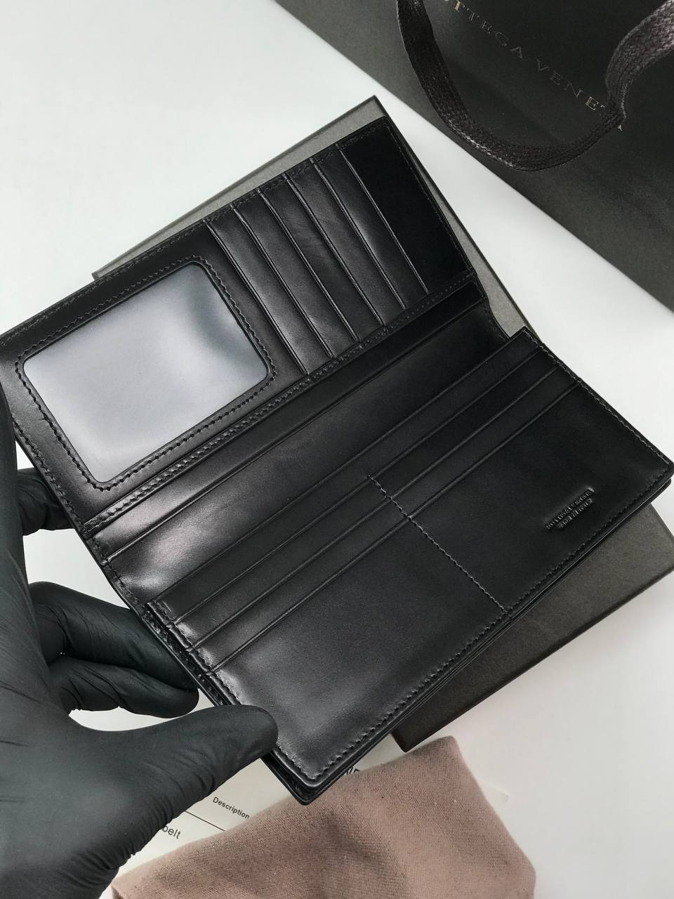 Кожаный кошелёк с множеством отделений для карт и прозрачным окошком для ID. Минималистичный дизайн в классическом чёрном цвете.