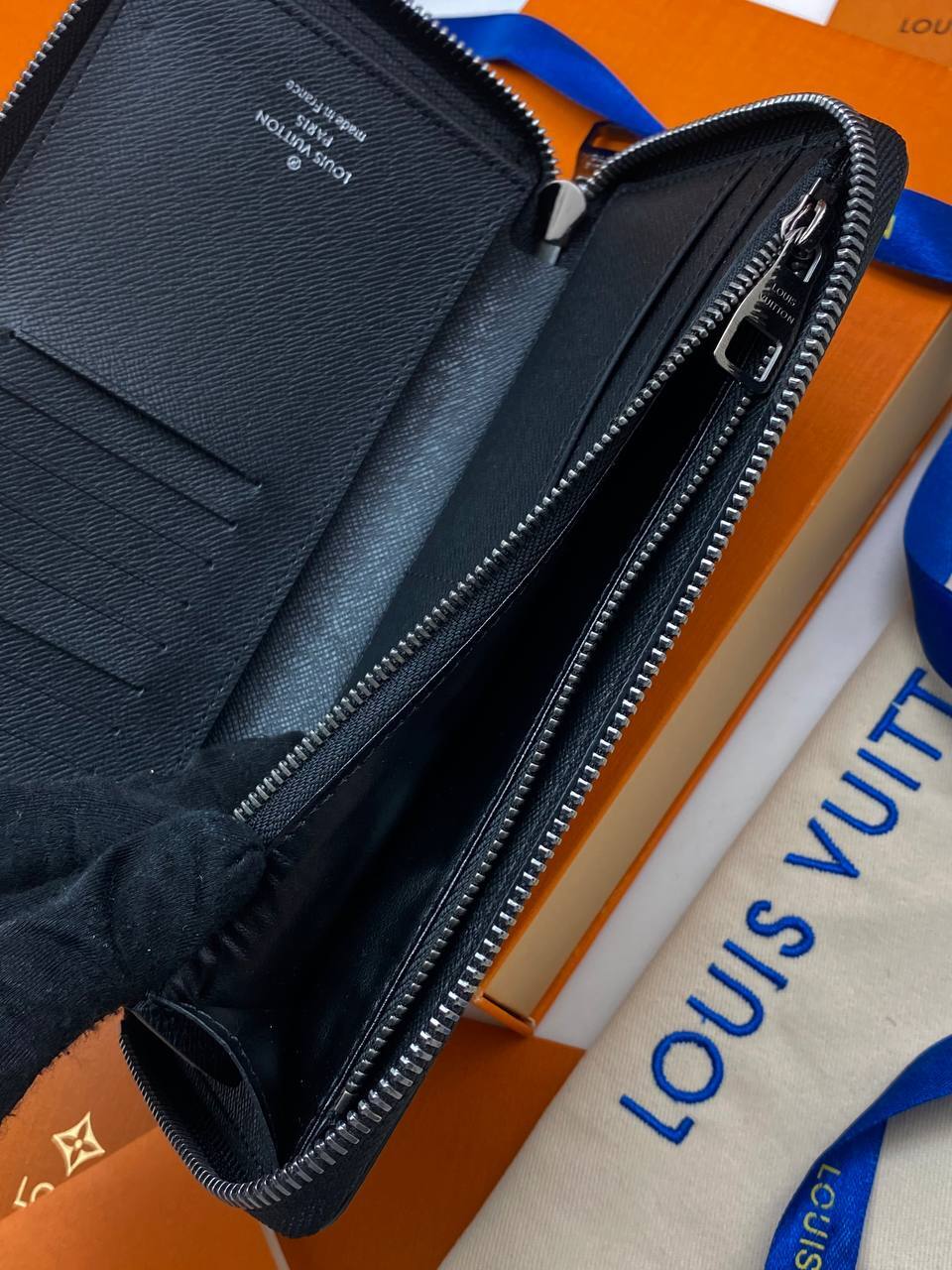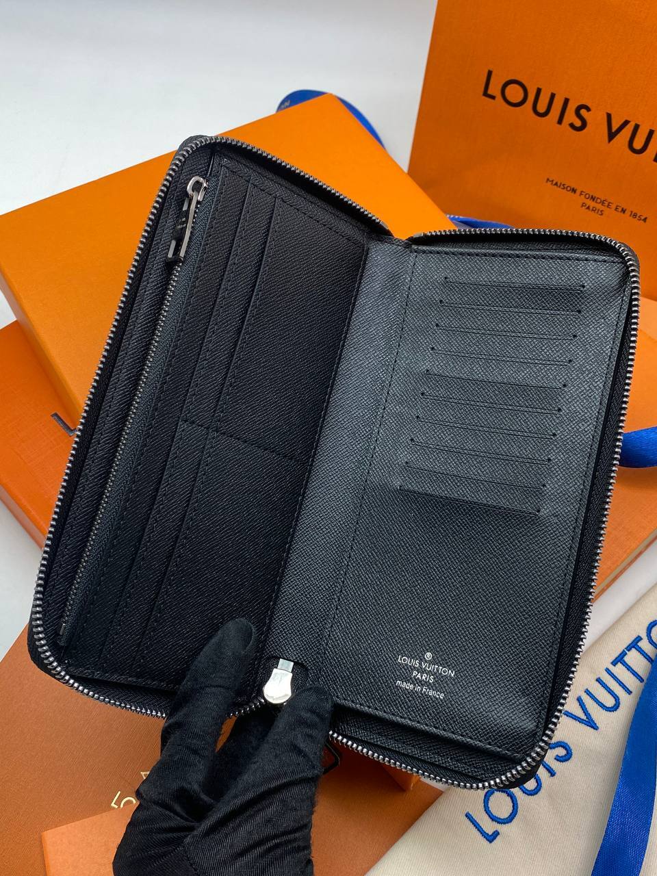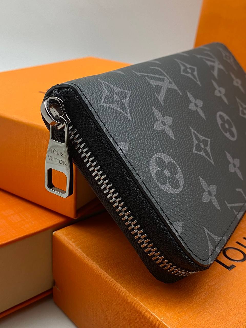Кошелёк в фирменном стиле Monogram Eclipse - черная кожа с тисненым узором, классический дизайн на молнии с множеством отделений для карт и купюр.