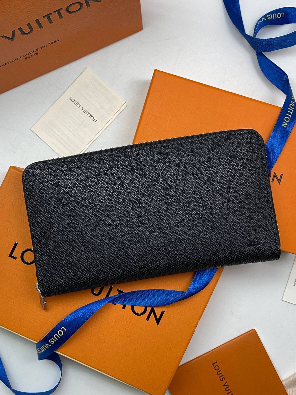 Премиальный кожаный кошелек-клатч в черном цвете с серебристыми элементами, сочетающий классический стиль и современный дизайн.