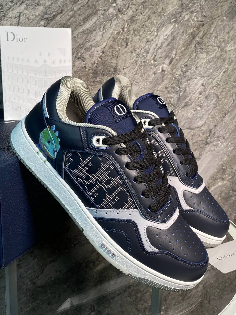 Оригинальный дизайн от модного дома: кроссовки из натуральной кожи с креативным изображением динозавра, сочетающие спортивный шик и элементы стиля ретро.