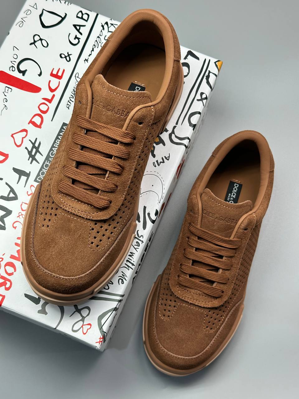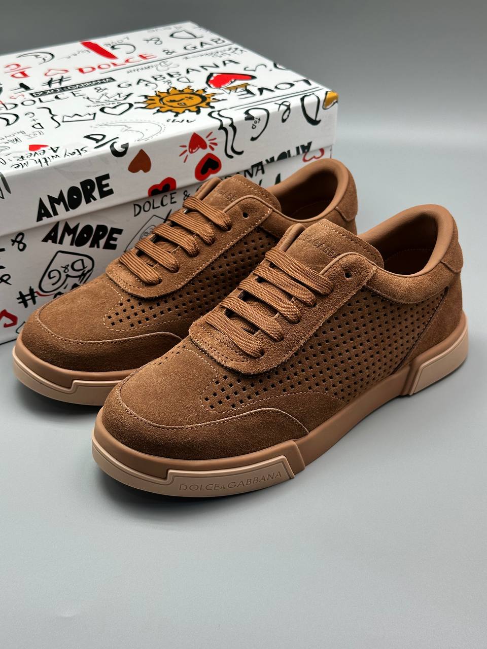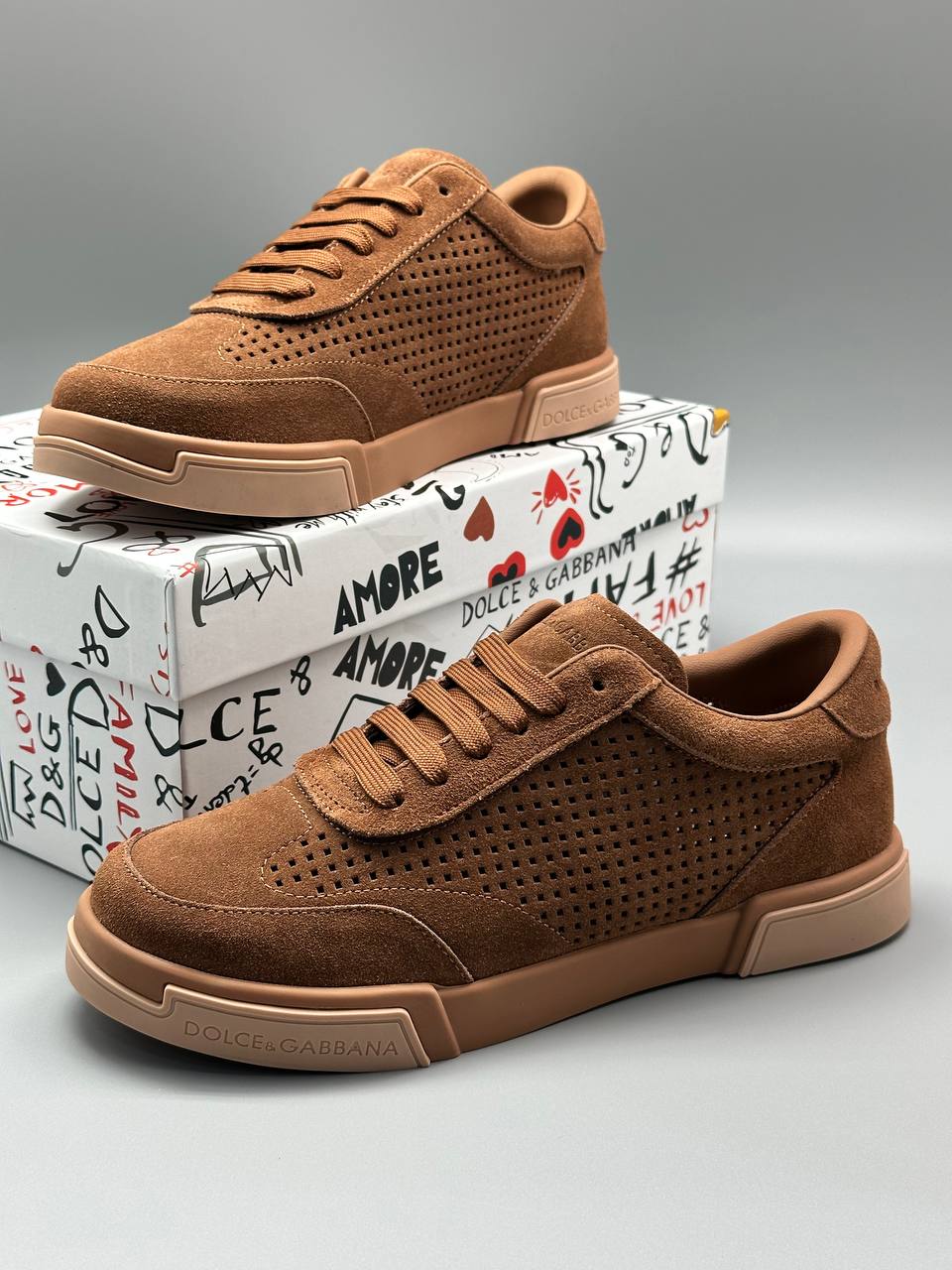 Комфортные и модные замшевые кроссовки в классическом коричневом цвете с перфорированными элементами.