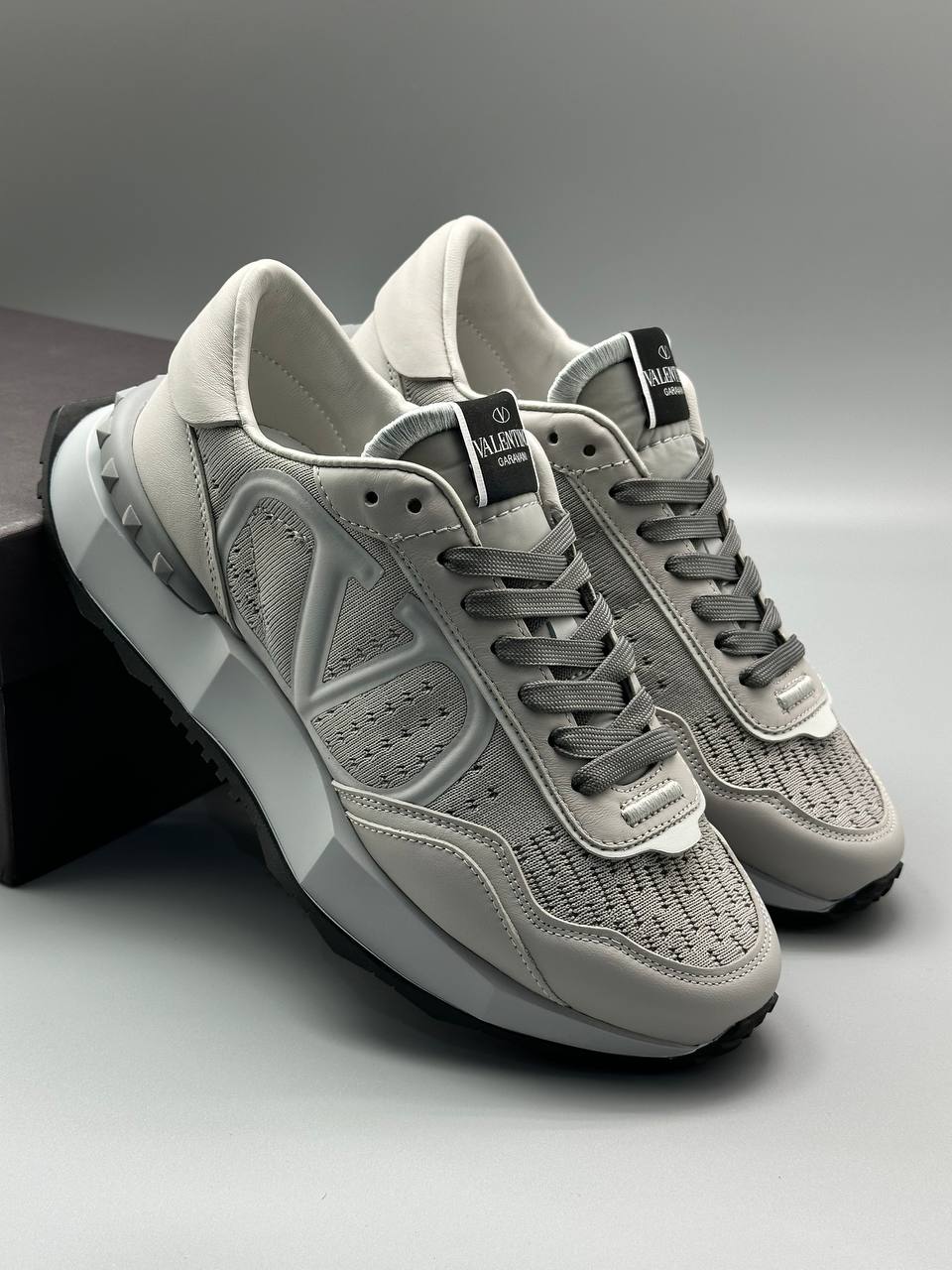 Люксовые кроссовки с фирменной символикой бренда. Изготовлены из качественных материалов: сетчатый текстиль и натуральная кожа.