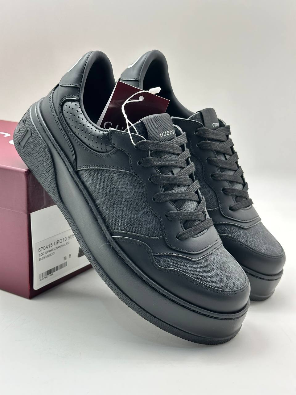 Кроссовки из качественной кожи с монограммой, выполненные в лаконичном черном цвете. Подошва с узнаваемым брендовым рисунком завершает образ.