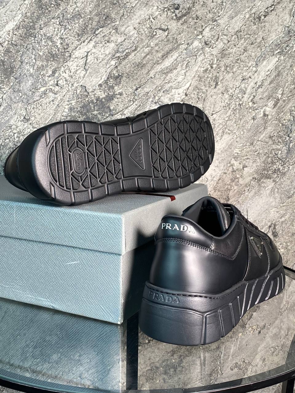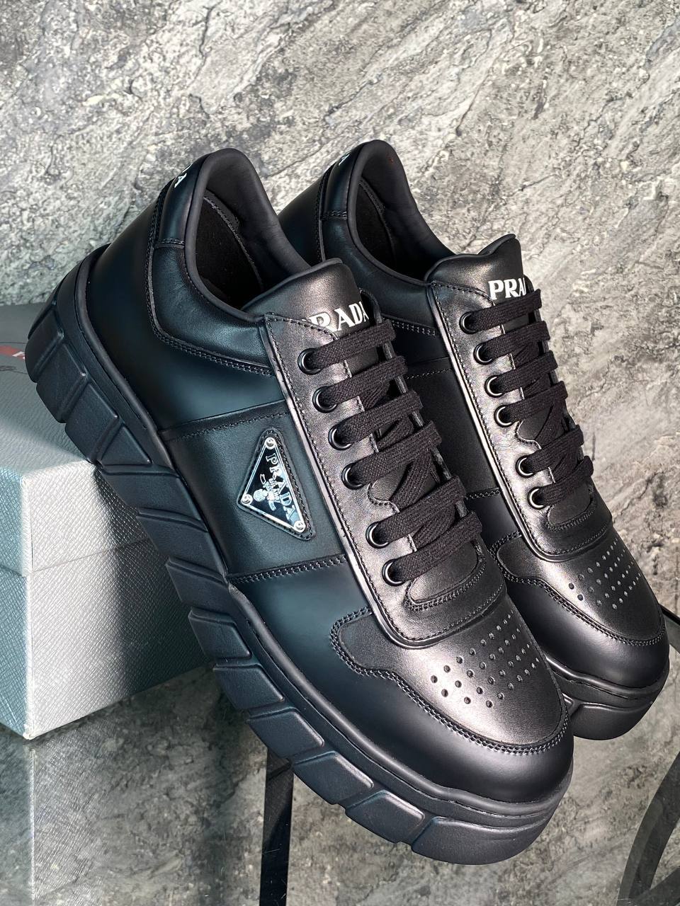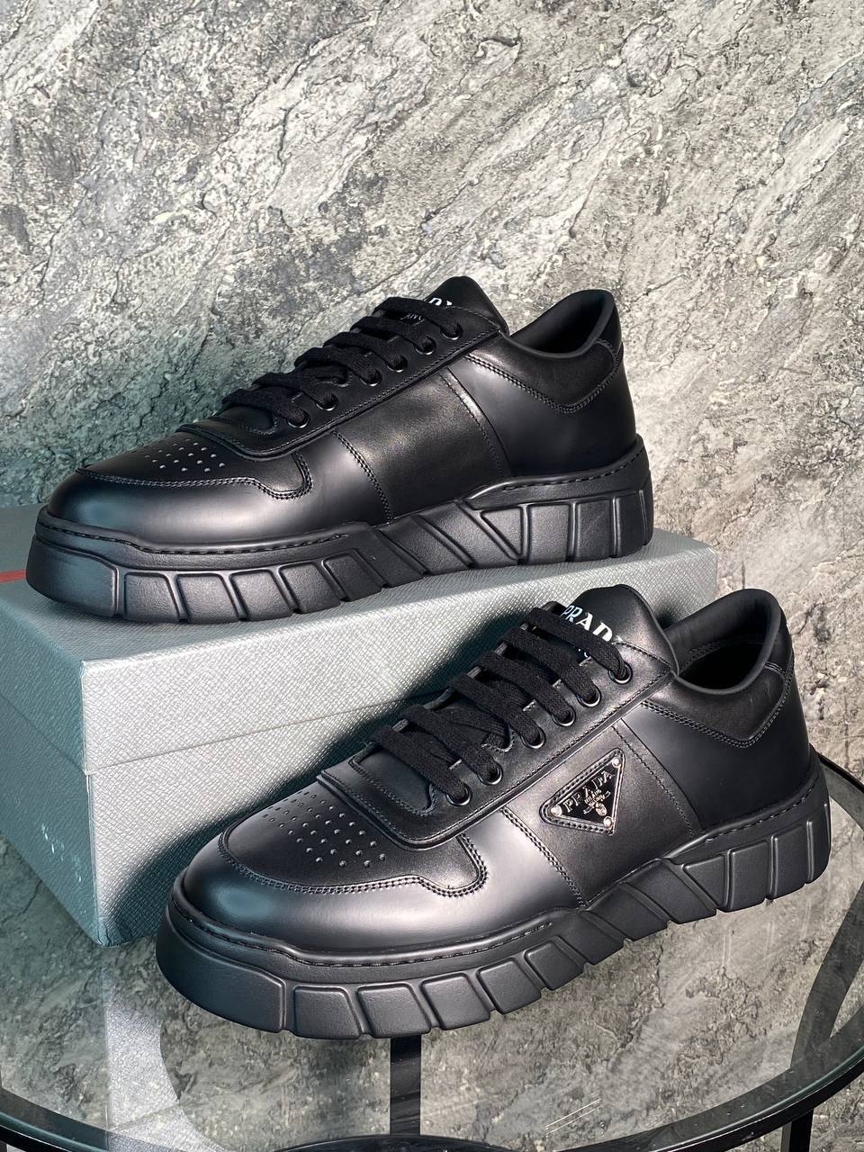Черные кроссовки Prada из мягкой кожи с фирменным треугольным логотипом - элегантная и удобная обувь на каждый день.