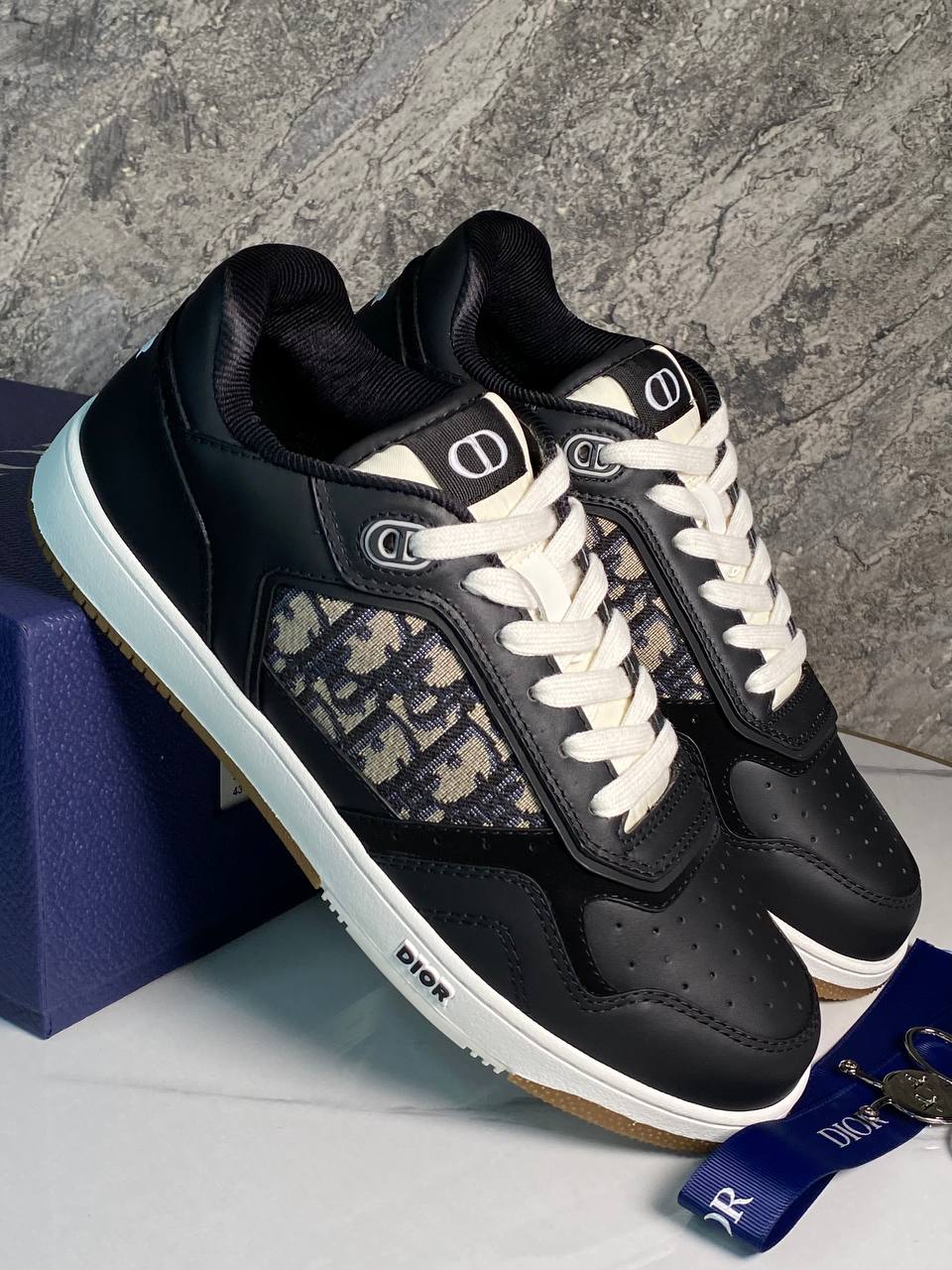 Модель кроссовок B27 в черно-белой гамме: премиальная кожа, узнаваемый узор и акцент на деталях - выбор ценителей стиля.