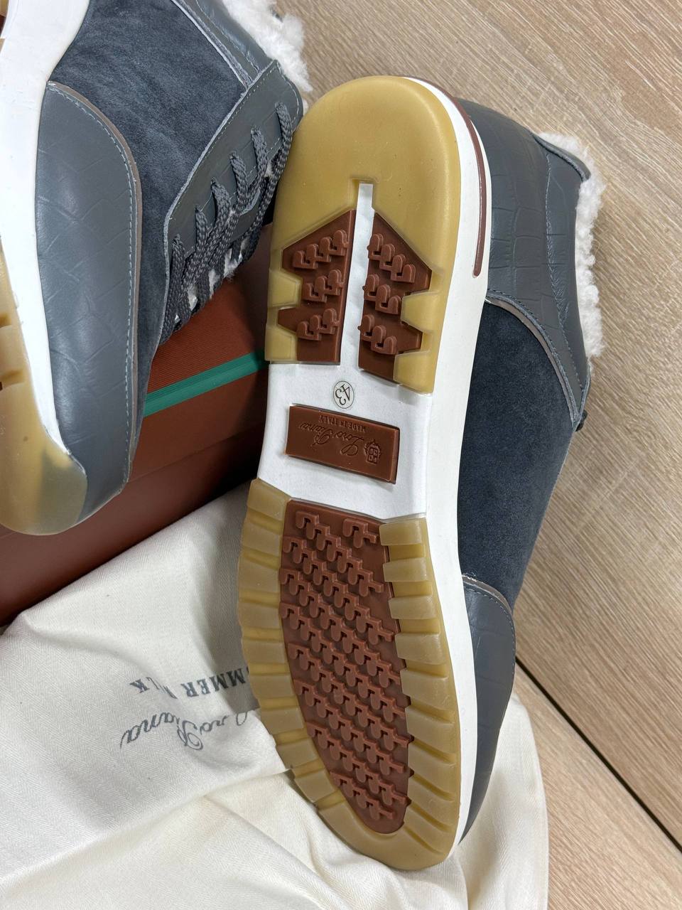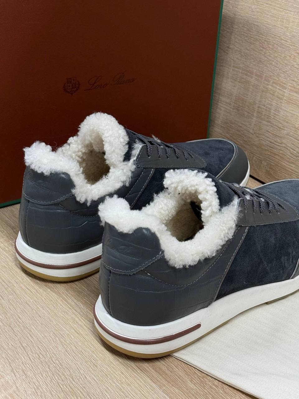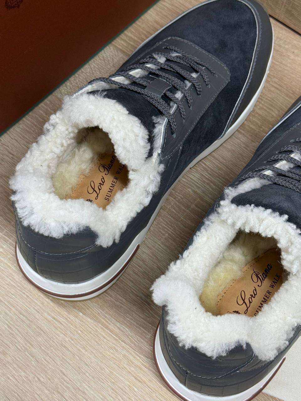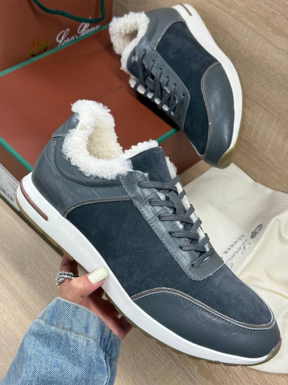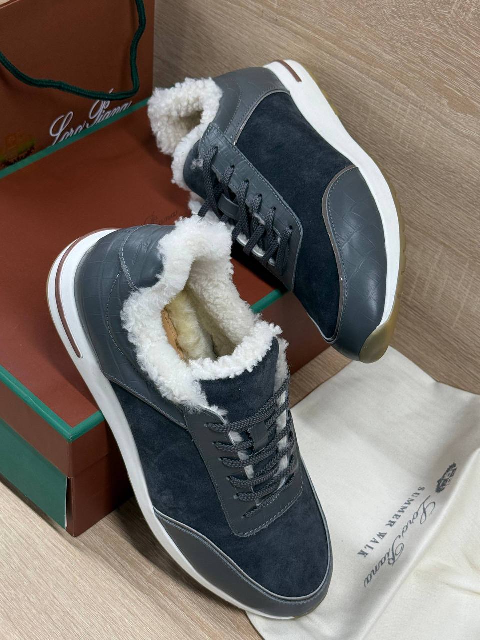 Кроссовки Loro Piana из натуральной замши и кожи серого цвета на меху.