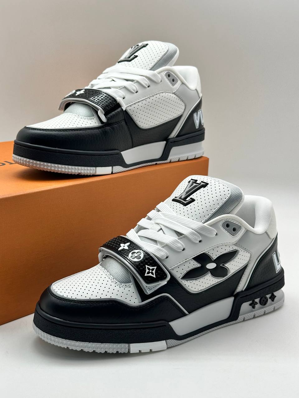 Монохромные кроссовки из перфорированной кожи с узнаваемым дизайном Trainer - идеальное сочетание спортивного стиля и роскоши.