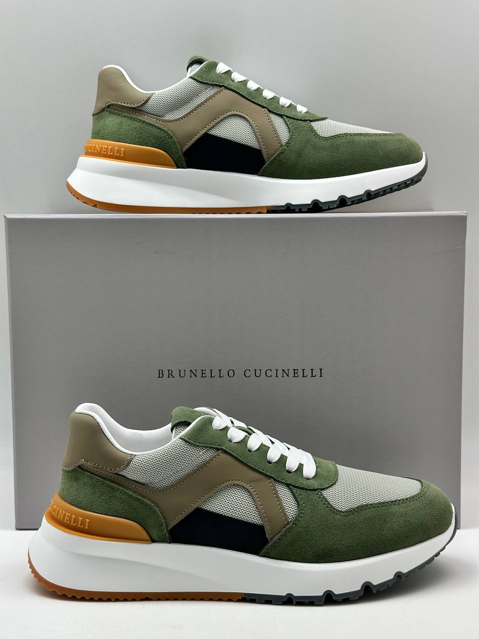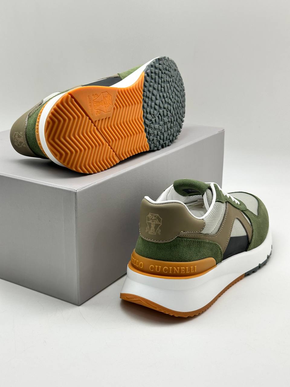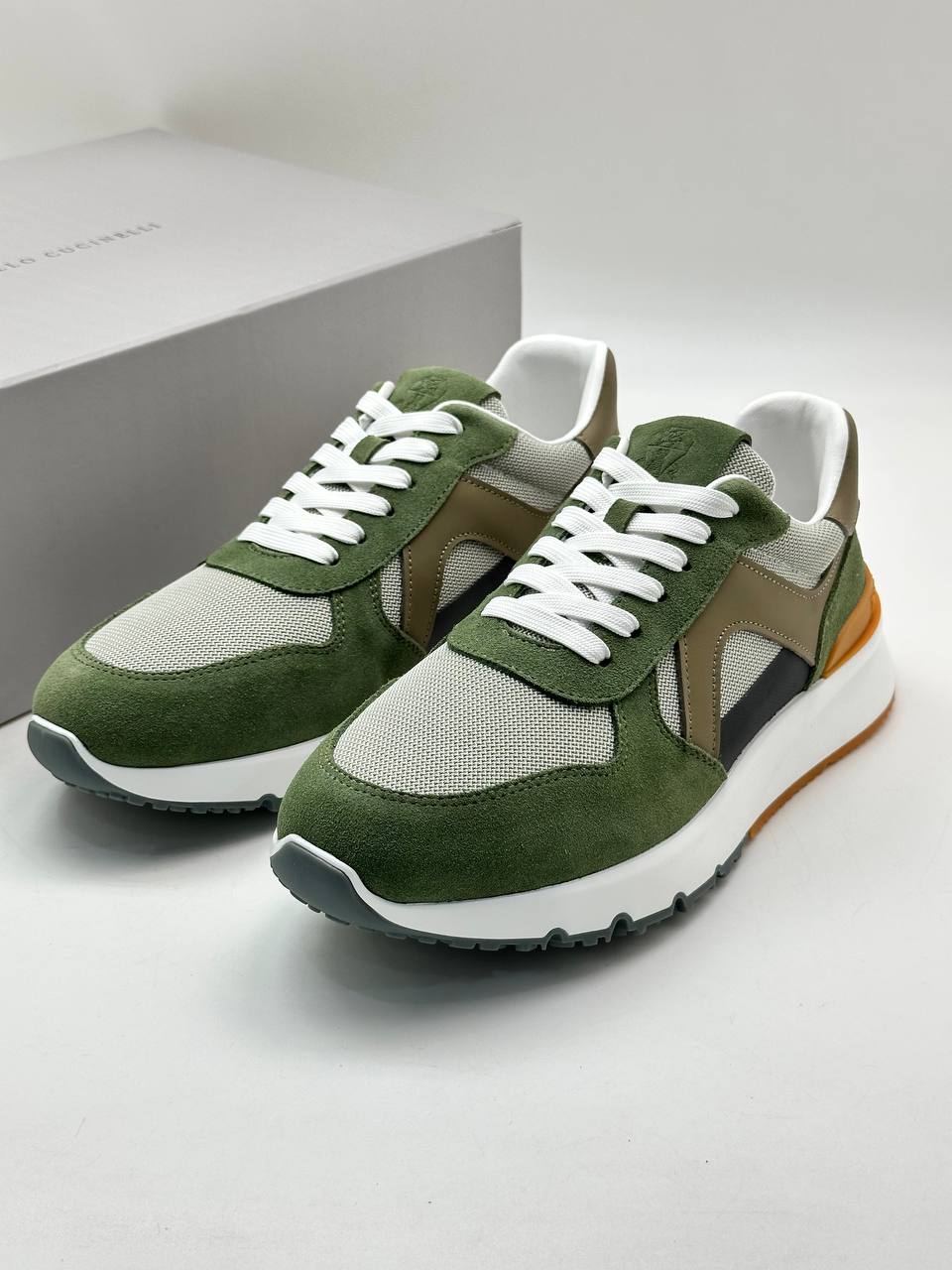 Замшевые кроссовки с сетчатыми панелями - гармоничное сочетание оливкового и хаки для активного образа жизни.
