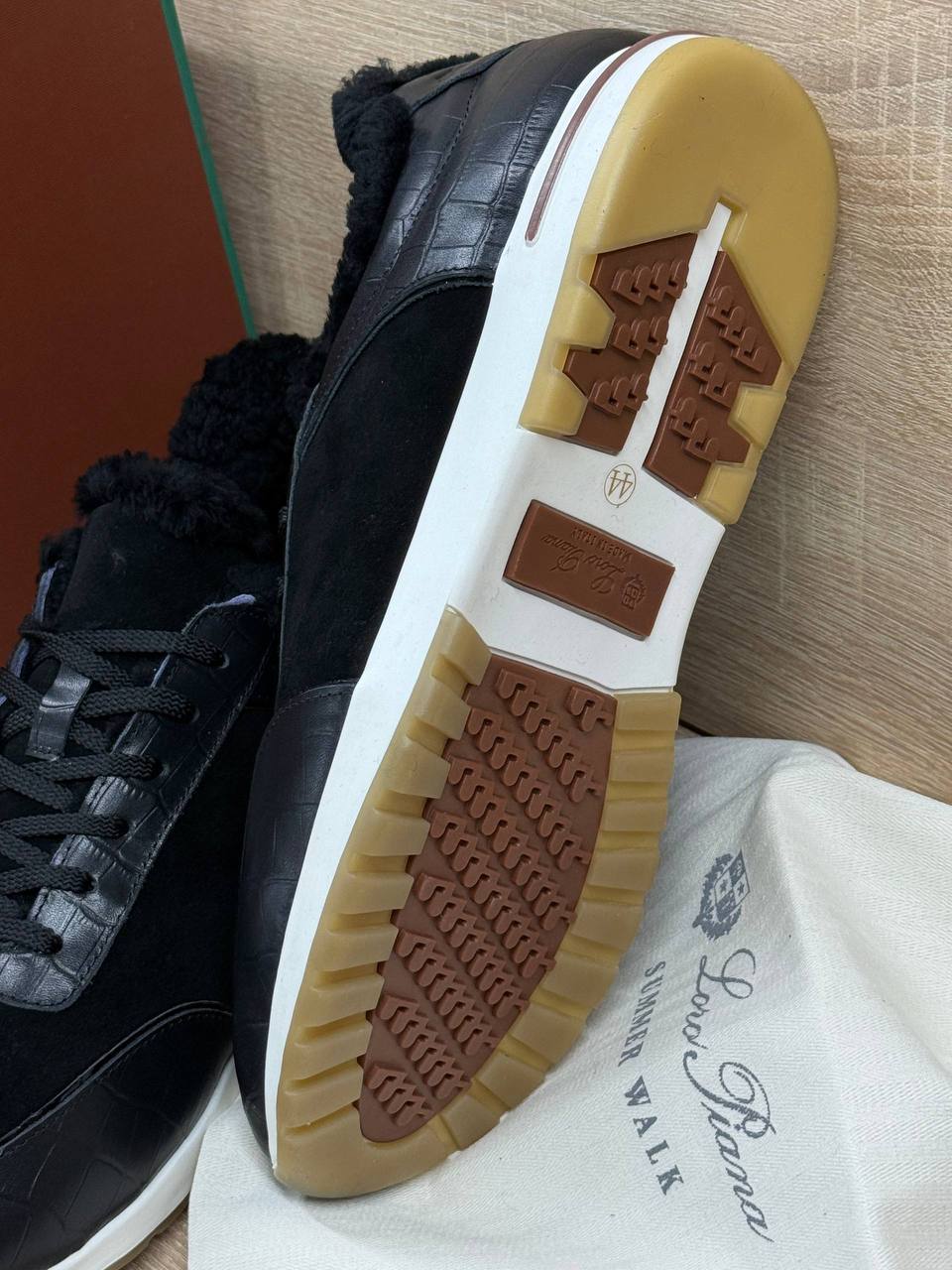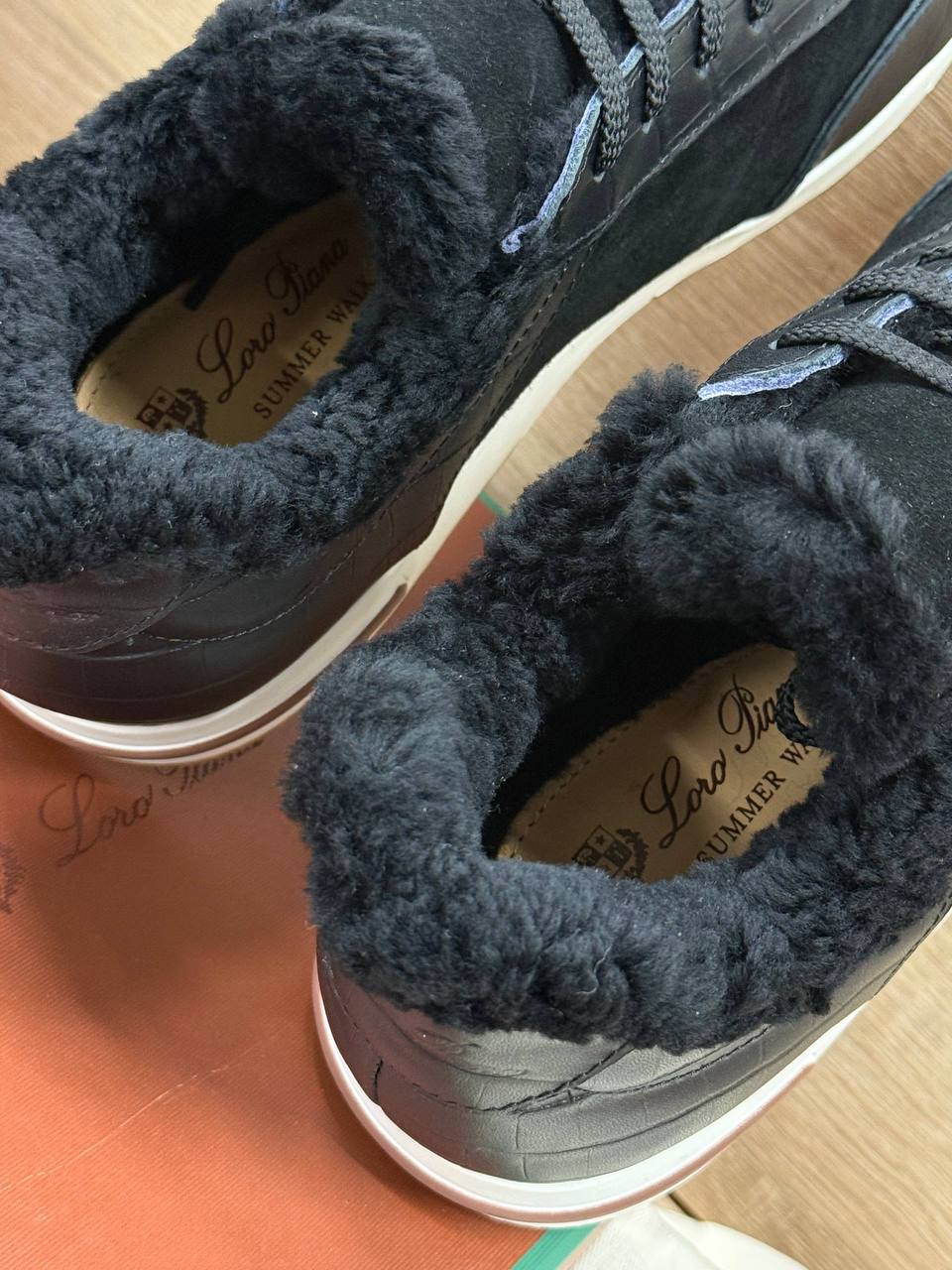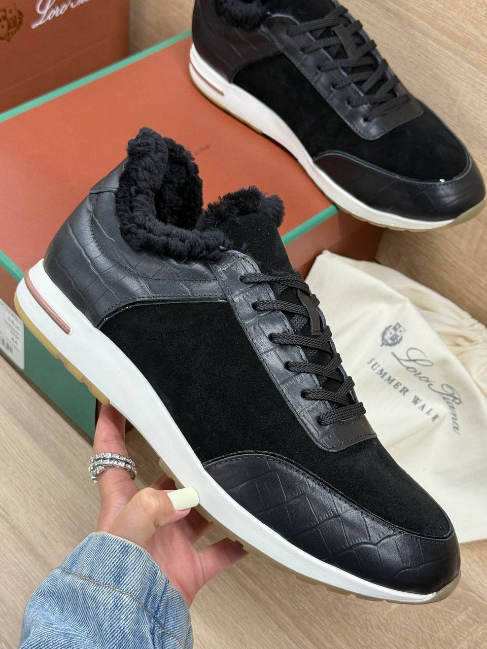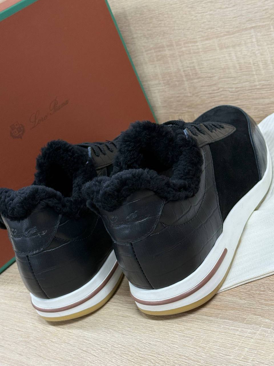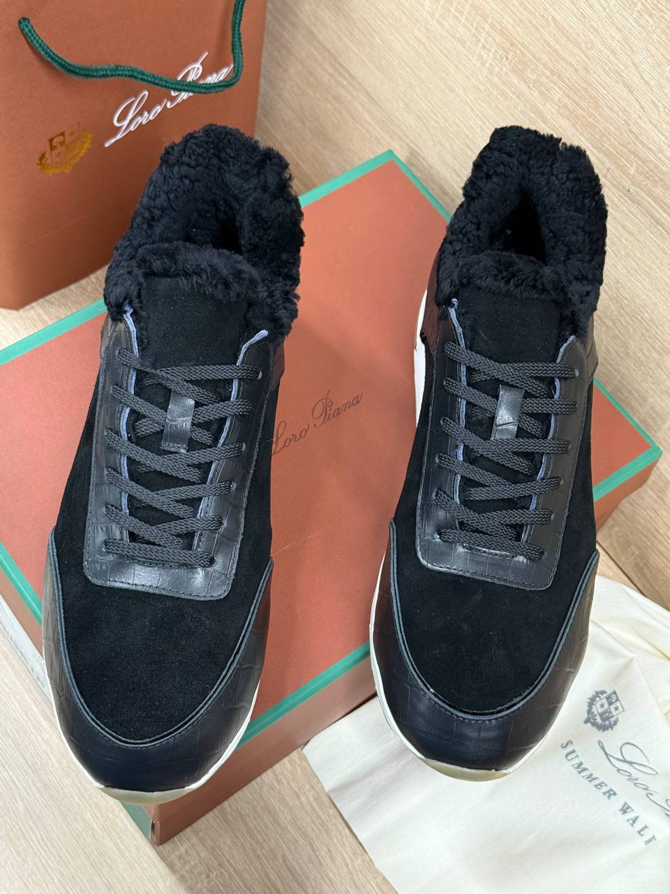 Кроссовки Loro Piana из натуральной замши и кожи чёрного цвета на меху.
