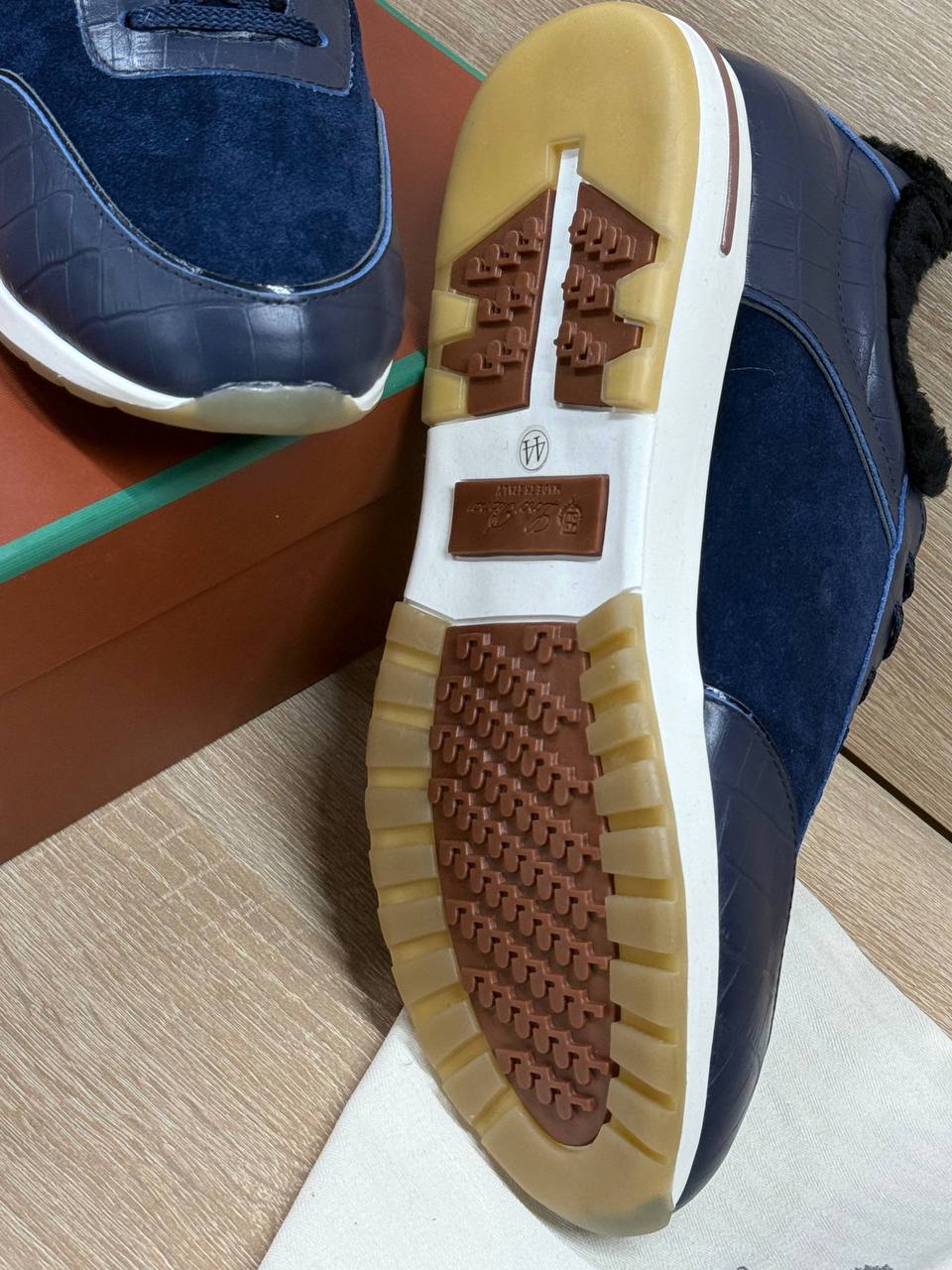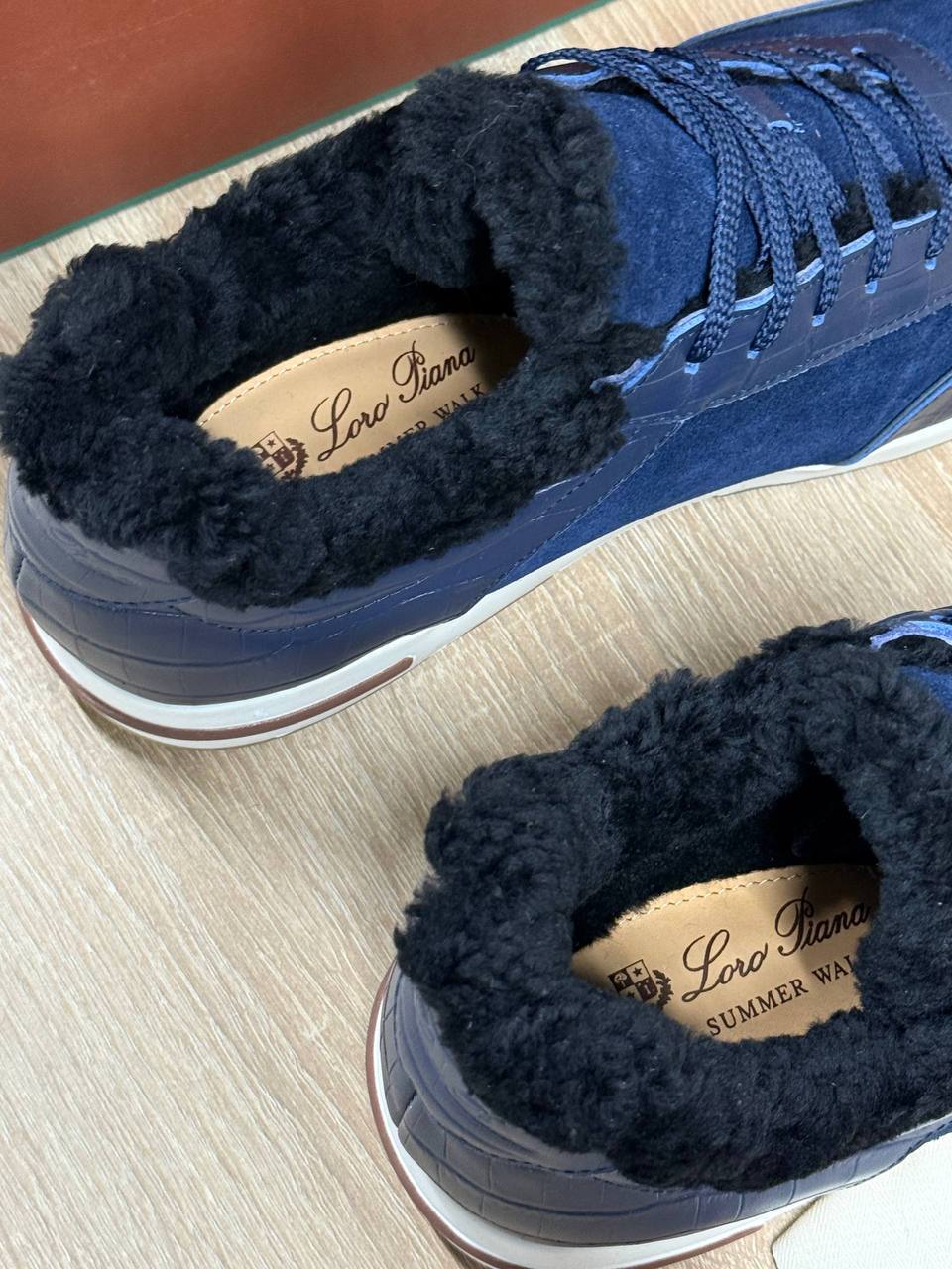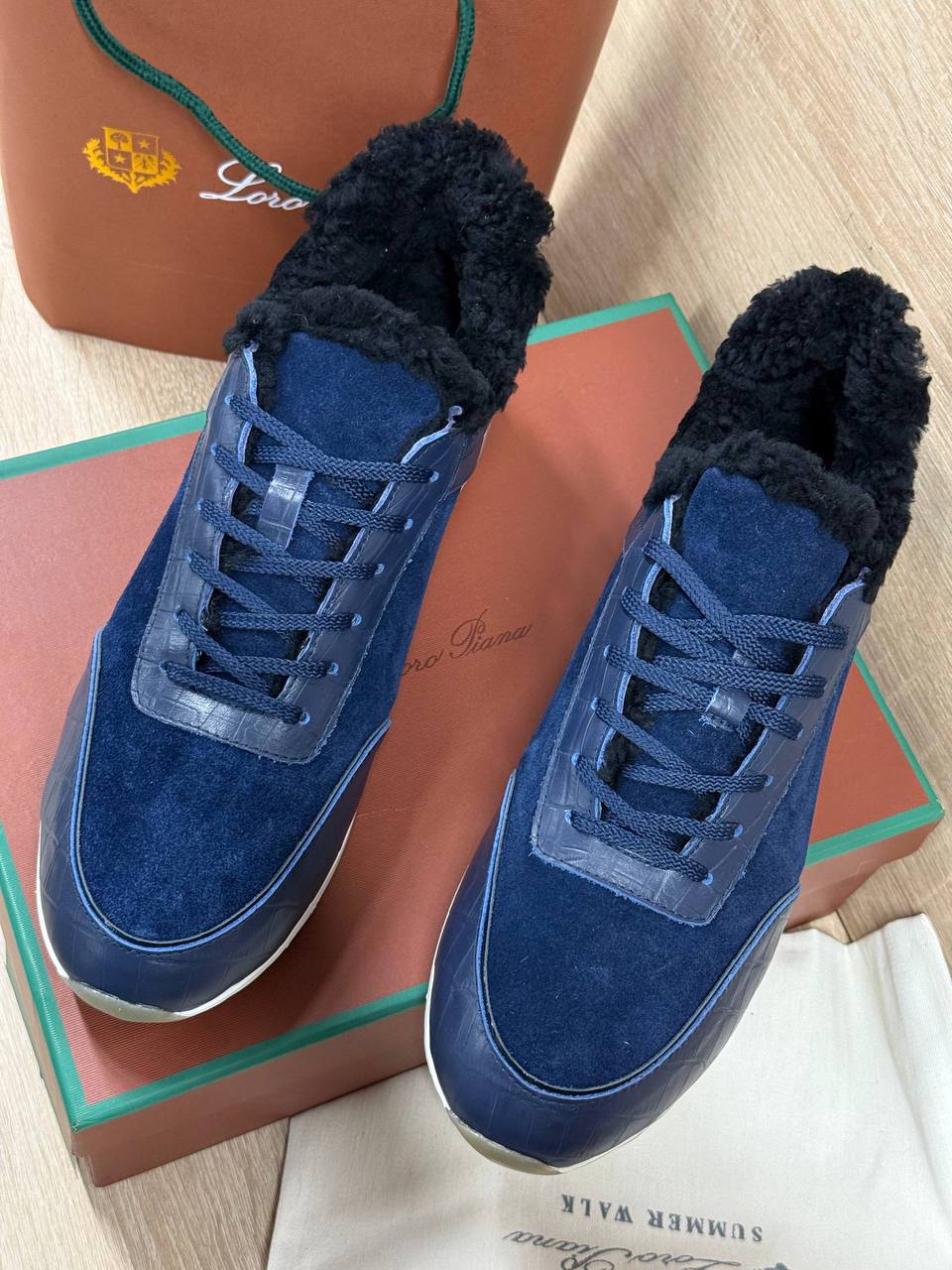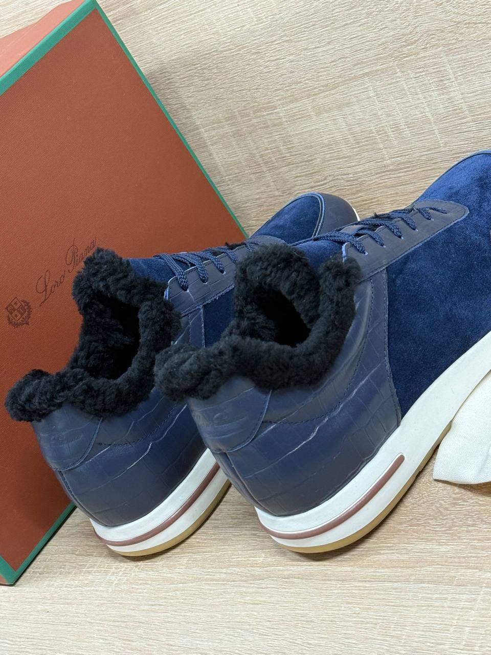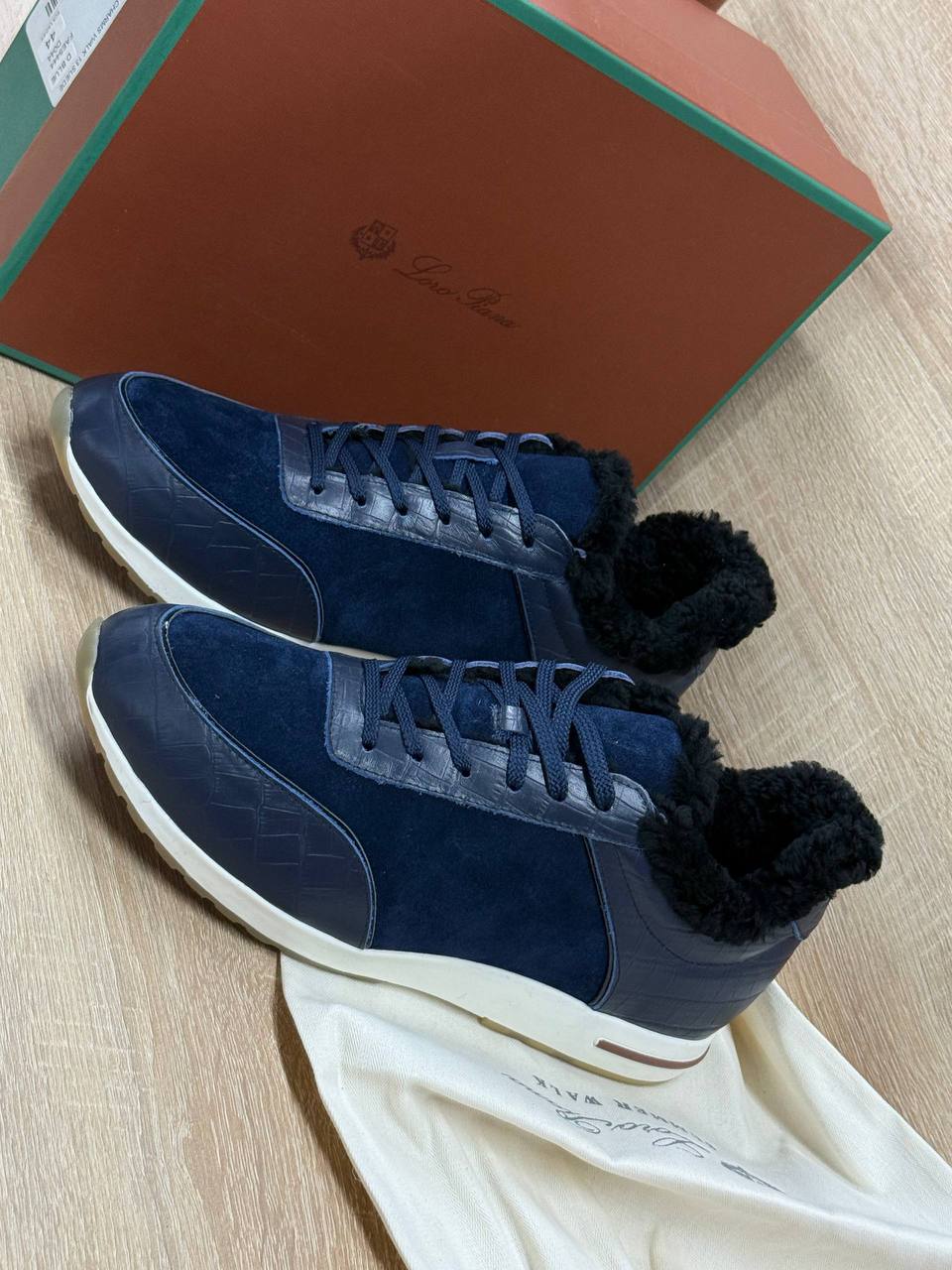 Кроссовки Loro Piana из натуральной замши и кожи чёрного цвета на меху.