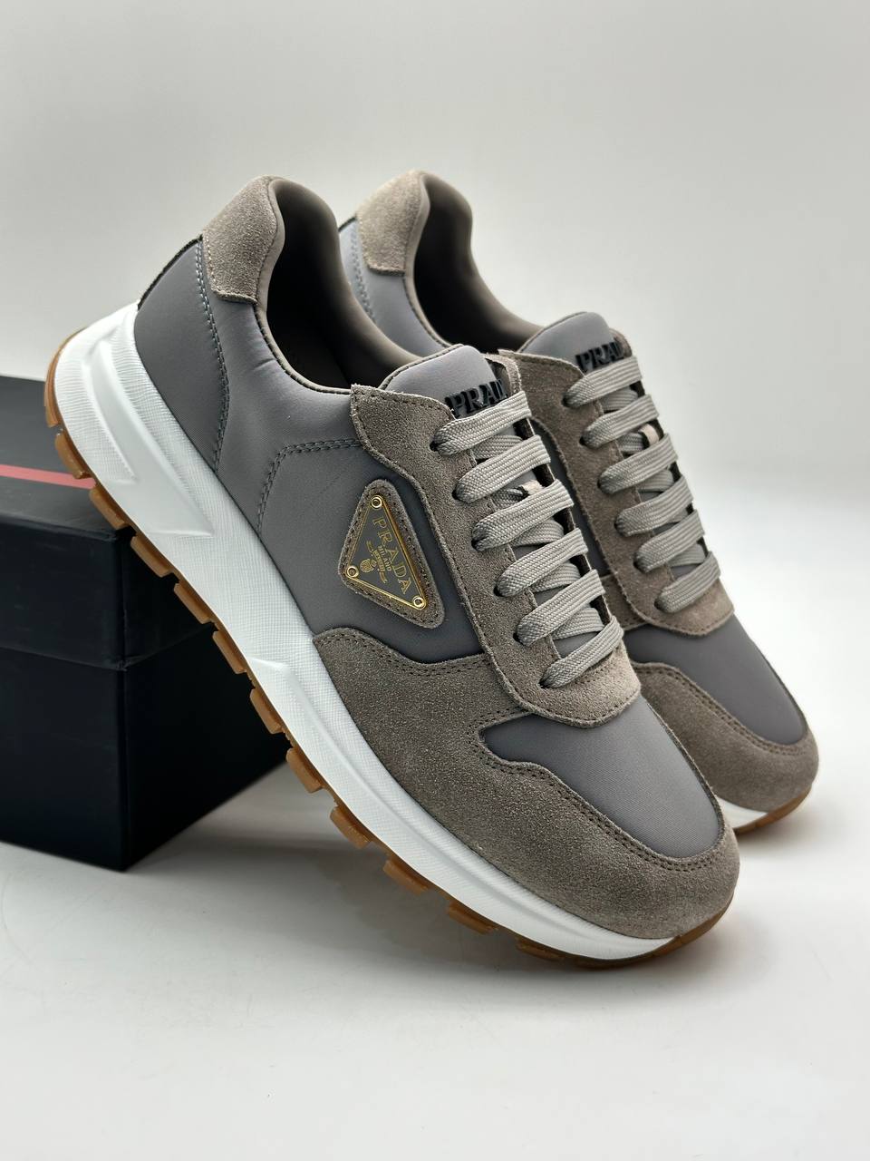 Стильные серые кроссовки из комбинации замшевой кожи и нейлона на рифленой резиновой подошве.