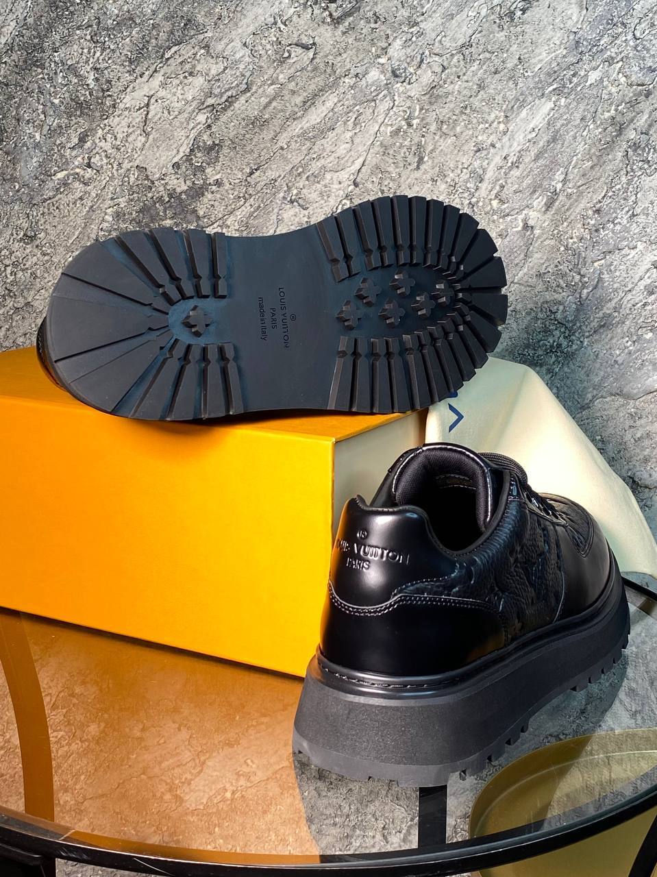 Модель кроссовок из премиальной кожи с уникальным тиснёным узором, толстой рифлёной подошвой и акцентными шнурками - смелое дизайнерское решение для создания эффектного образа.