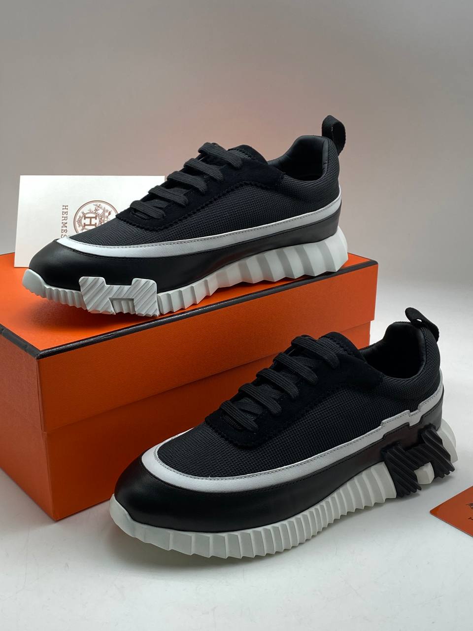 Лаконичные трендовые кроссовки в чёрном цвете из легкого текстильного материала с белыми деталями и удобной подошвой.