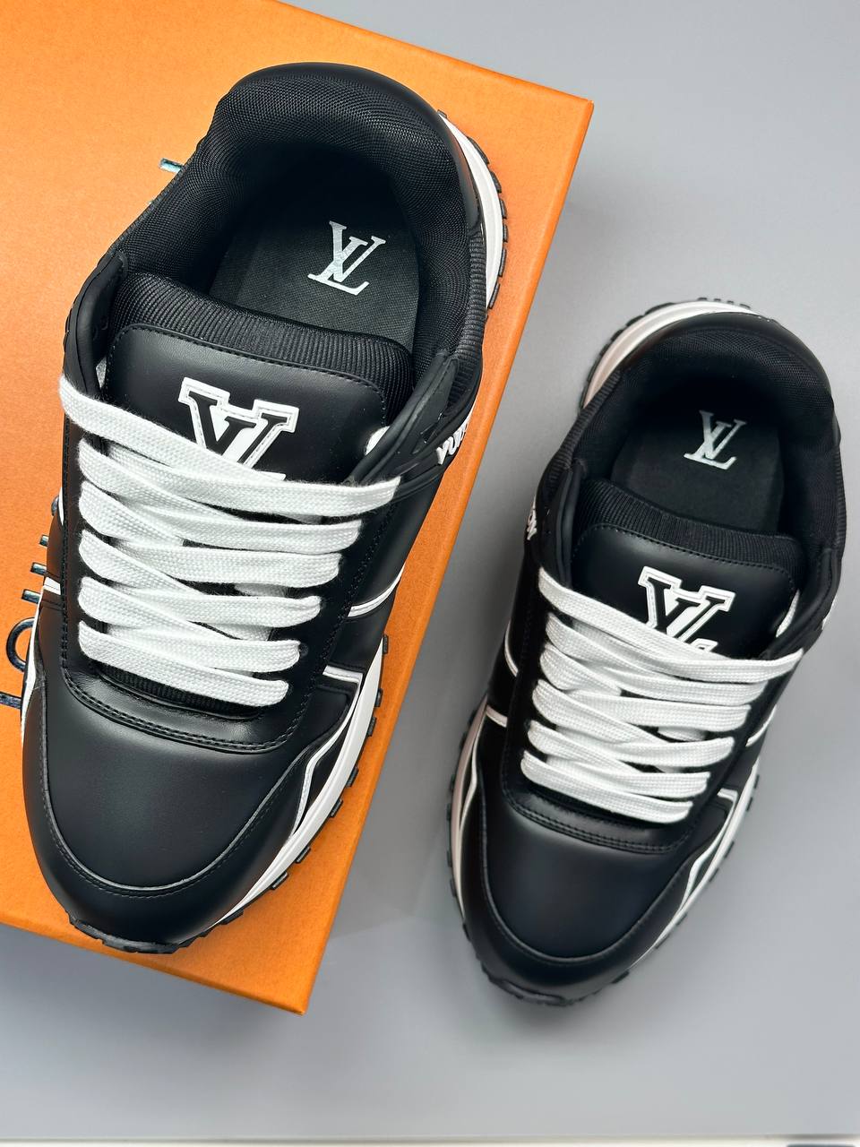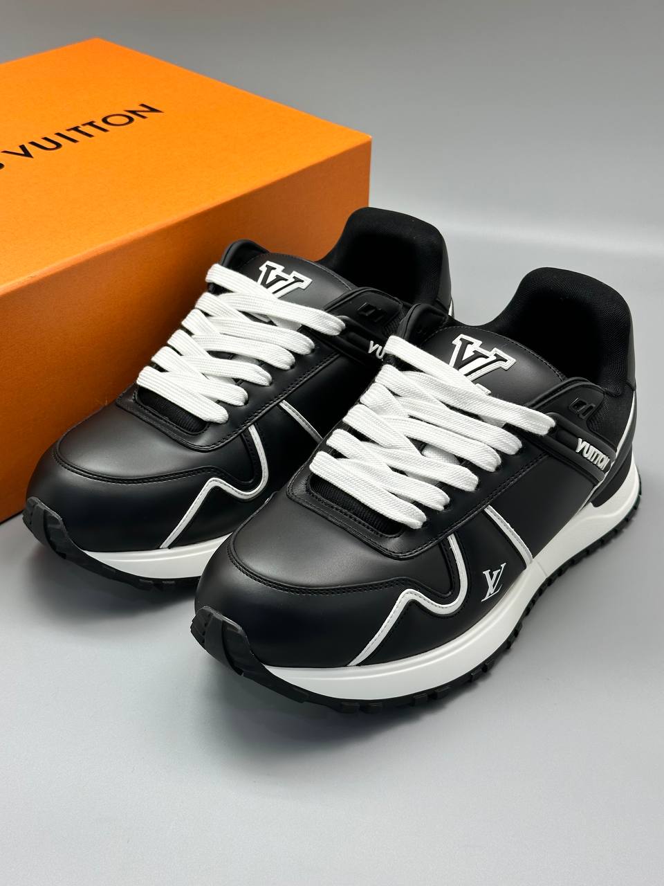 Кроссовки из гладкой натуральной кожи, выполнены в современном спортивном стиле с контрастным дизайном в черно-белых тонах.