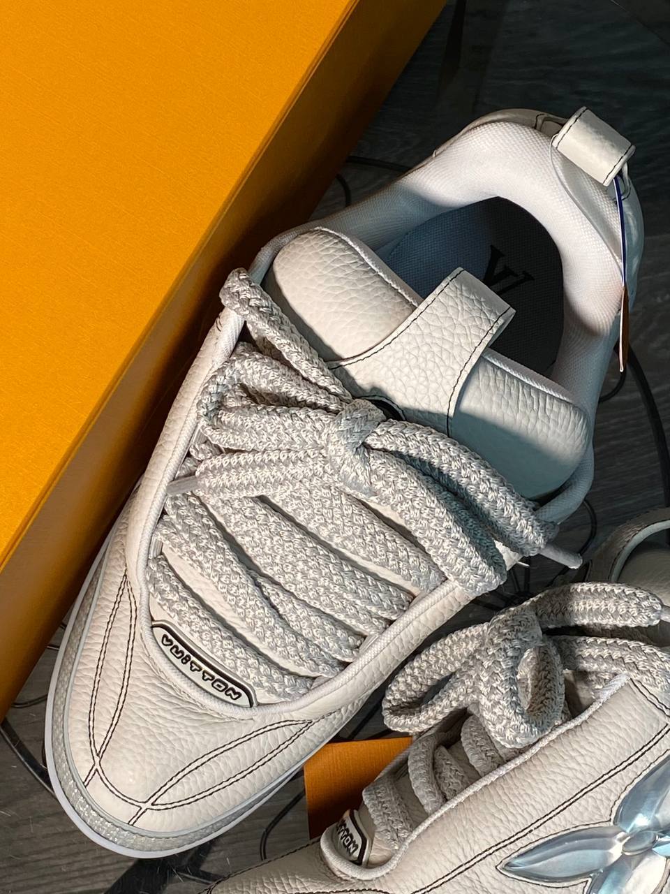 Стильные кожаные кроссовки серого цвета с интересной шнуровкой, удобной подошвой и небольшими цветными вставками для создания эффектного образа.