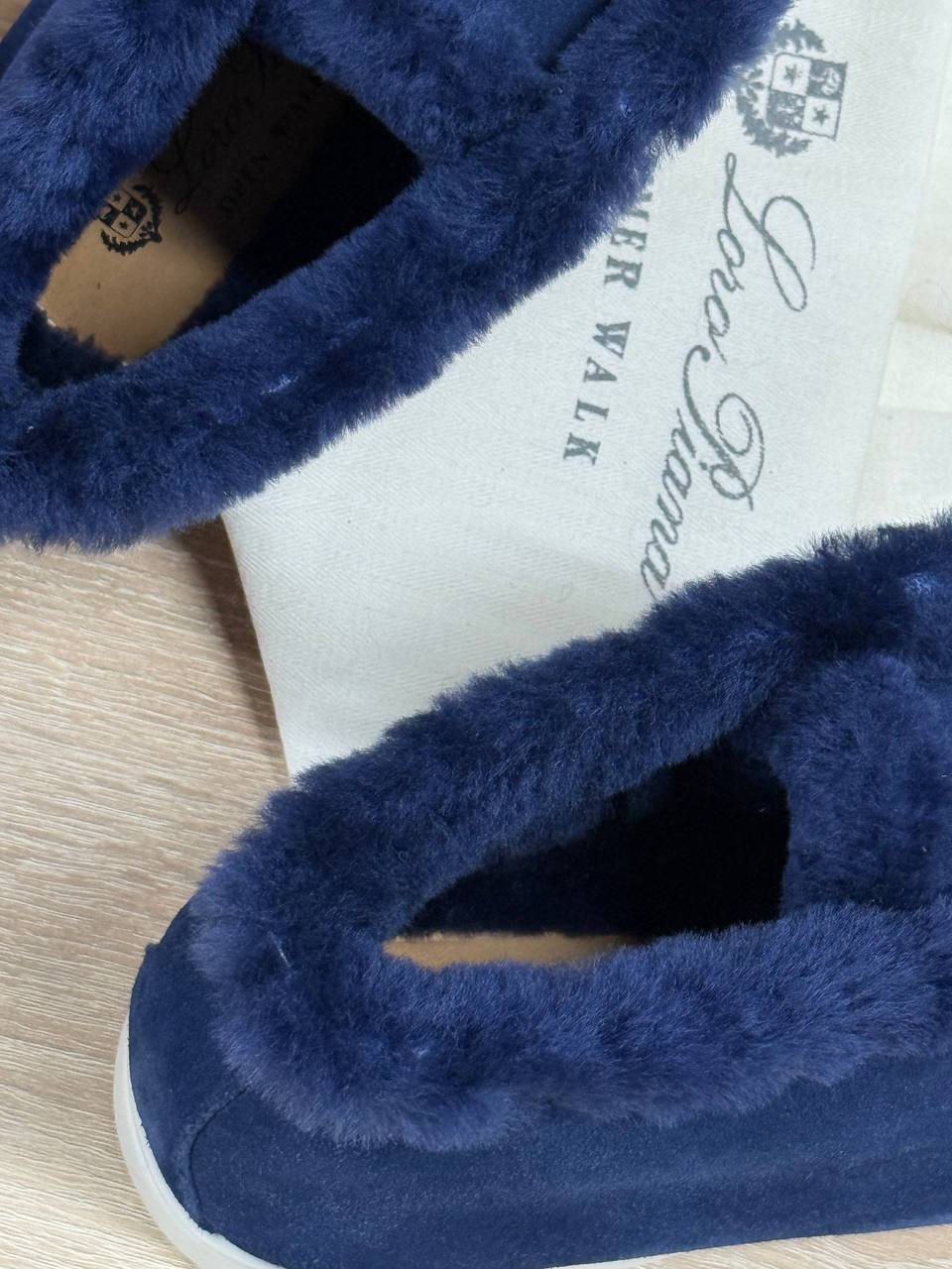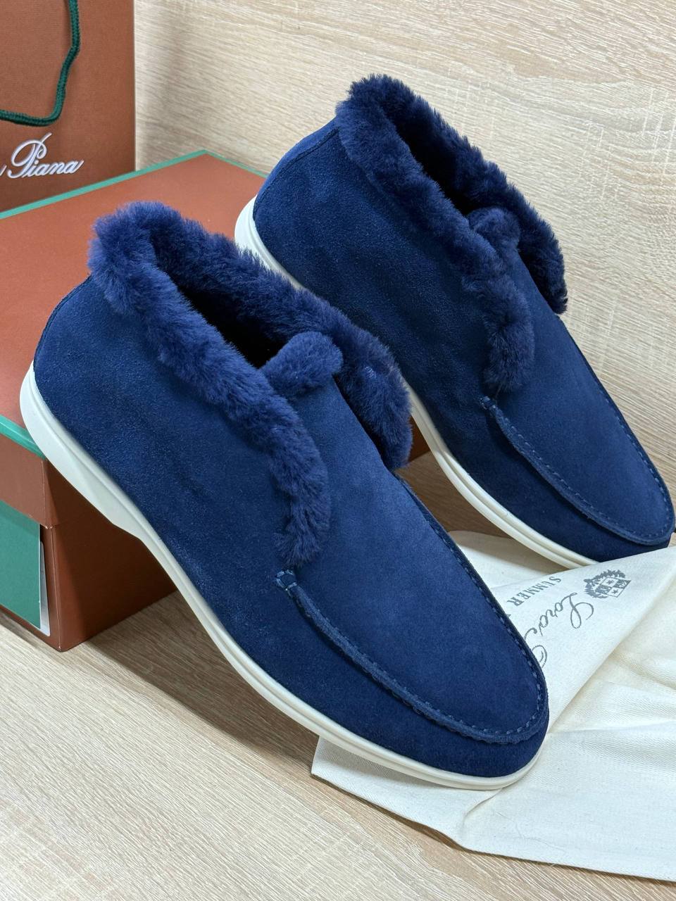 Высокие лоферы на меху Loro Piana из натуральной замши синего цвета.