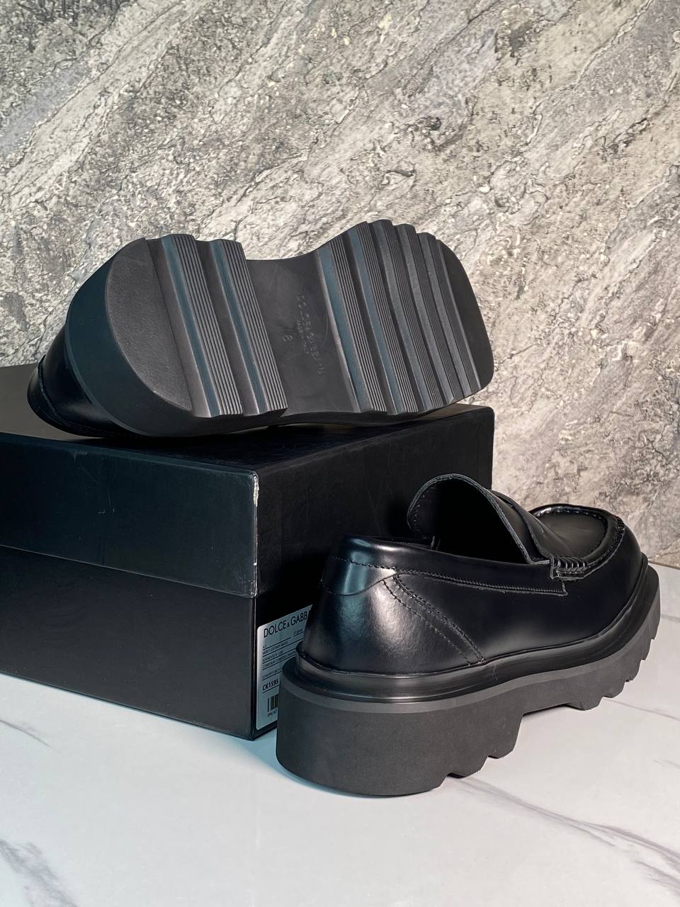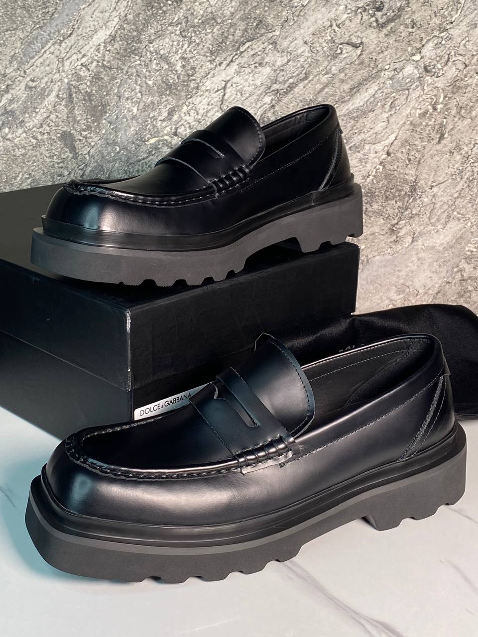 Классические чёрные лоферы из гладкой кожи на массивной рифлёной подошве. Модель в лаконичном стиле от бренда с хорошей репутацией.