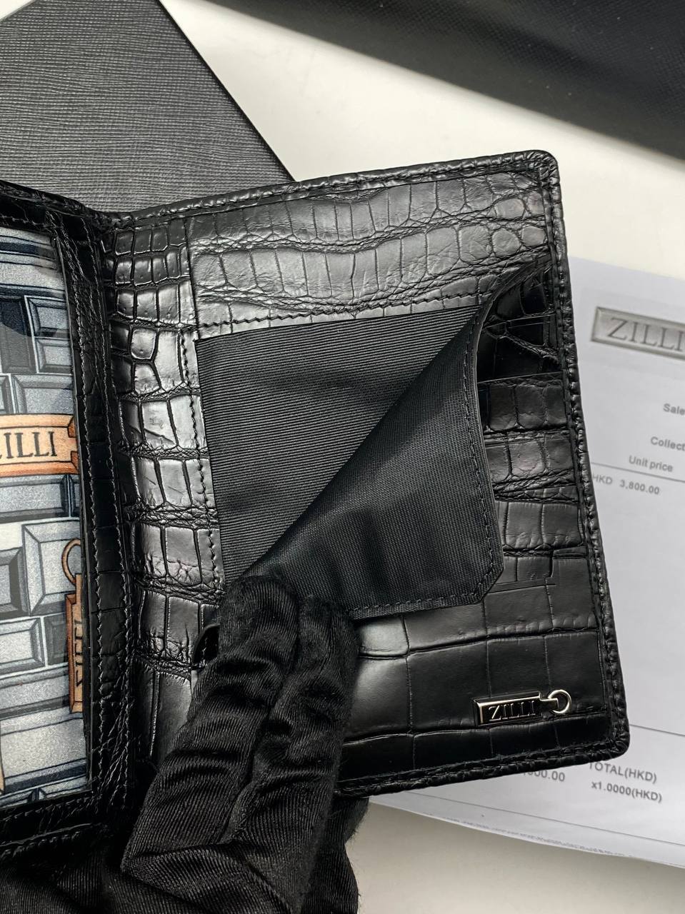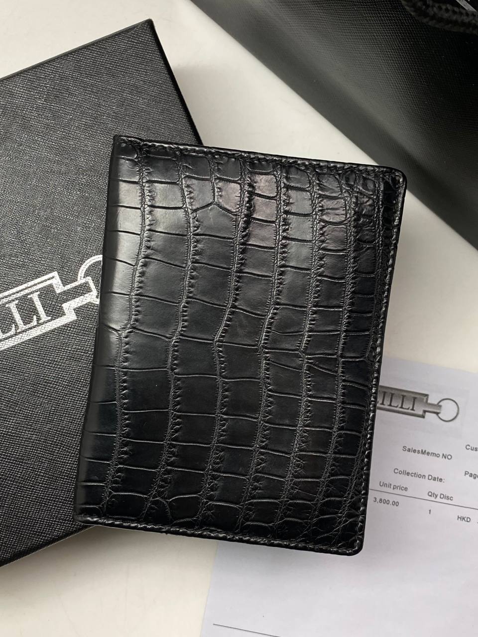 Роскошная кожа крокодила, глубокий черный оттенок, слоты для карт — стильная и функциональная обложка на паспорт готова.