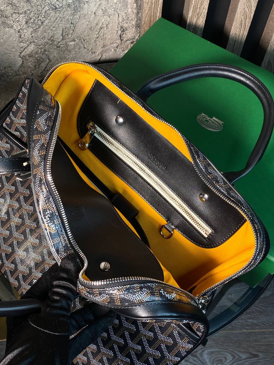 Элегантная сумка-портфель из фирменного материала Goyardine с узнаваемым геометрическим узором, идеально подходящая для делового стиля.