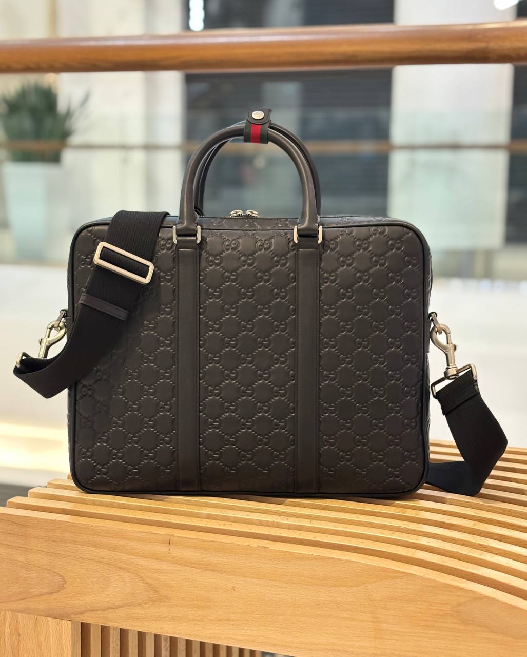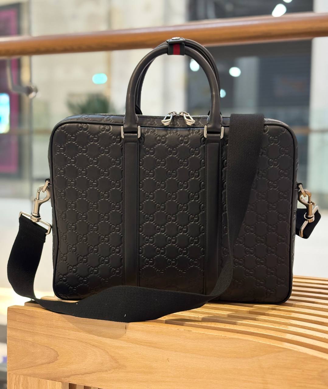 Чёрный портфель из тиснёной кожи: лаконичный силуэт, прочная фурнитура и продуманное внутреннее пространство — идеальный спутник для деловых дней.