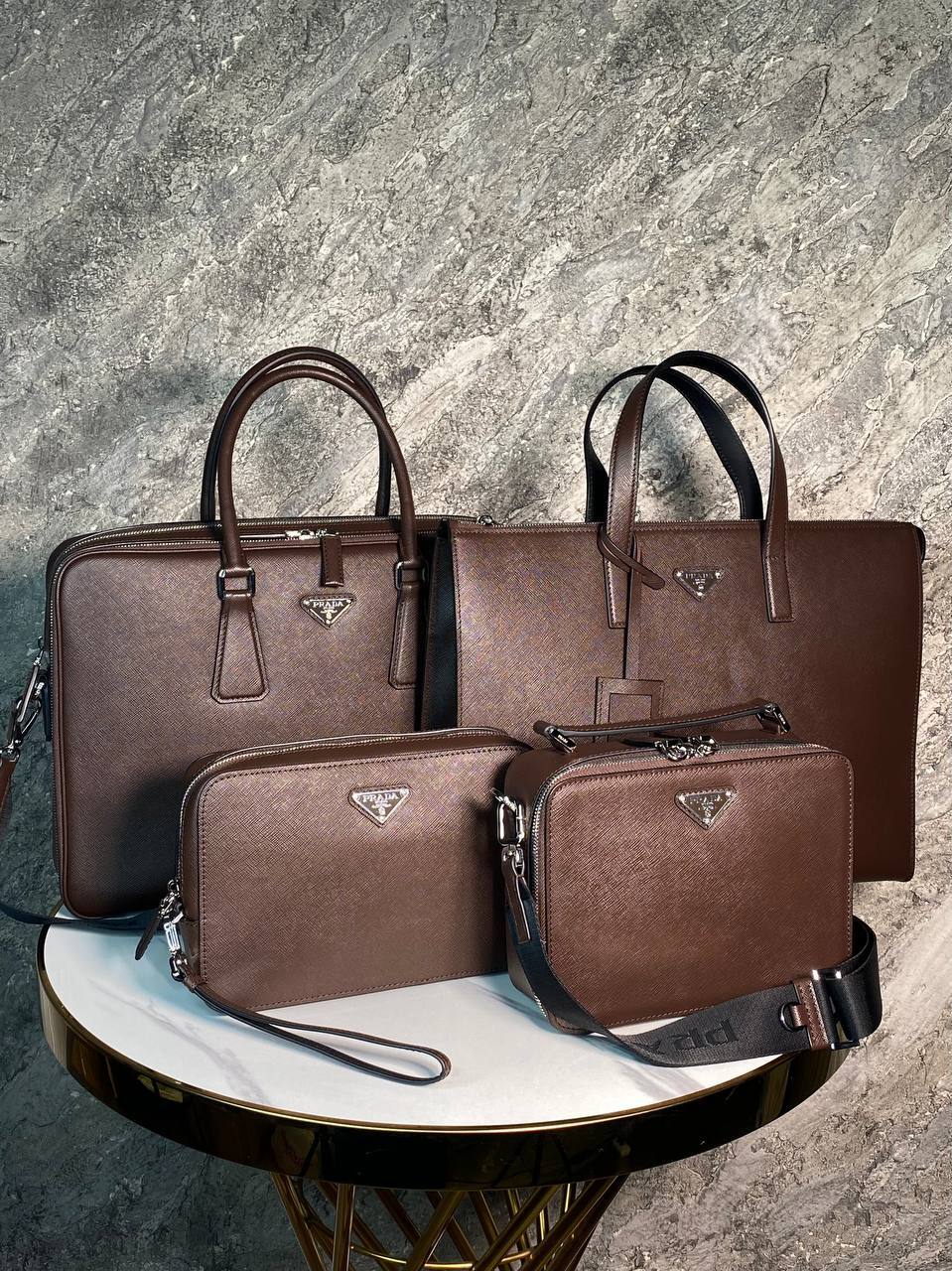 Строгий и практичный кожаный портфель коричневого цвета с серебристой фурнитурой - незаменимый аксессуар современного бизнесмена.