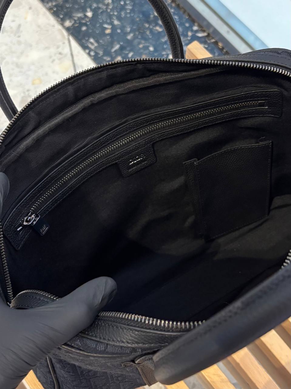 Минимализм с характером: сдержанный силуэт Dior, надежная молния и удобные ручки для любых деловых задач — вместит документы и ноутбук, подчёркивая статус без лишних слов.